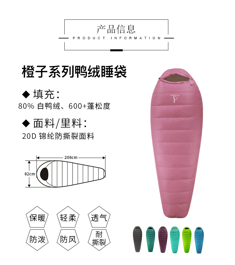 【燃冬特惠!】安地斯橙子高充绒量800-1200克木乃伊睡袋徒步露营旅行低温保暖睡袋