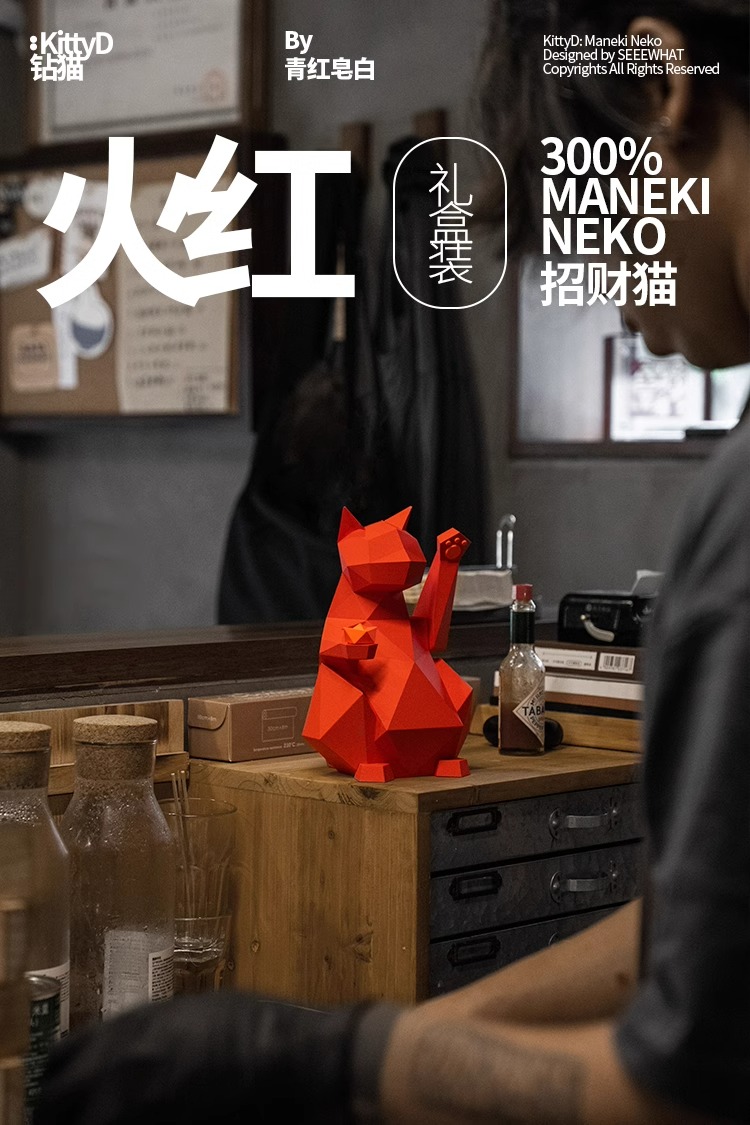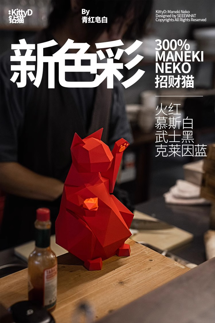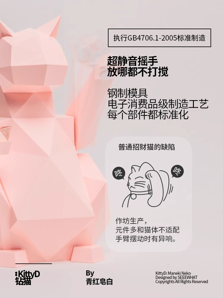 青红皂白钻猫招财猫自动招手摆件设计师前台家居客厅乔迁新居创意开业礼品