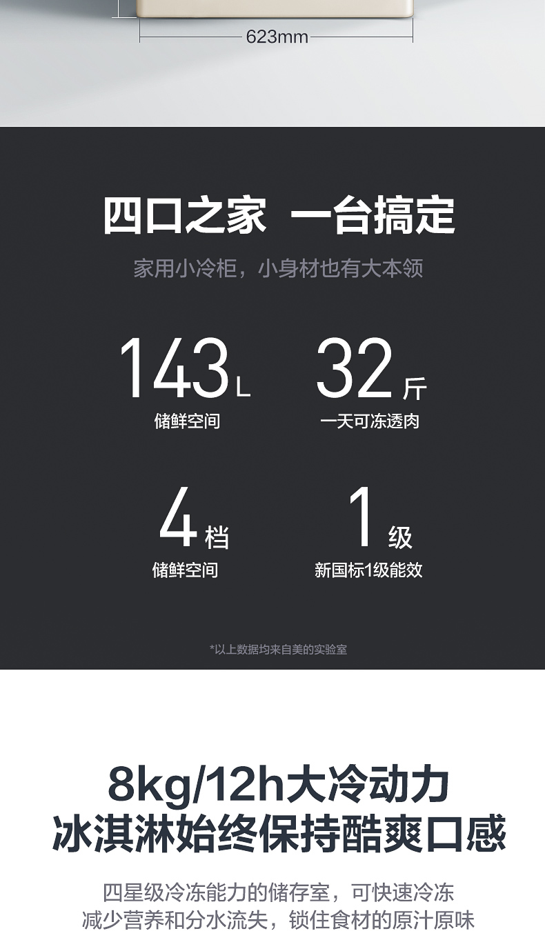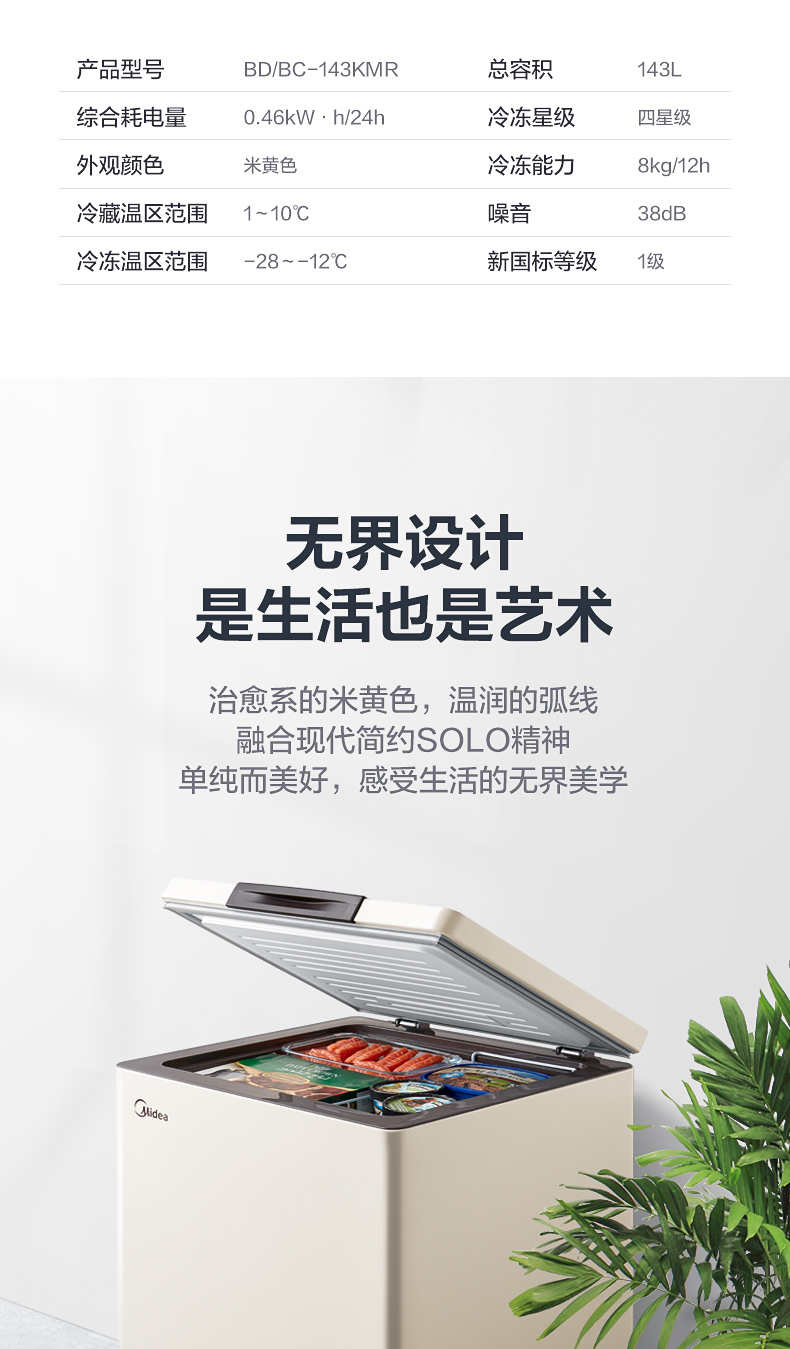【家用小冷柜】美的/Midea 143升顶开单温冰柜冷藏冷冻转换 一级能效BD/BC-143KMR
