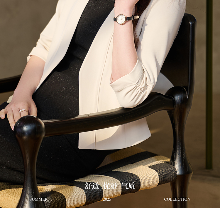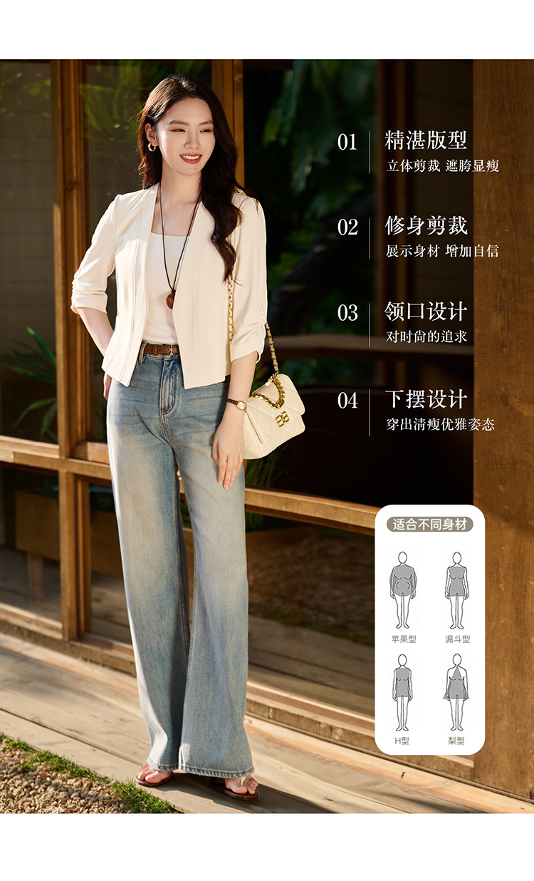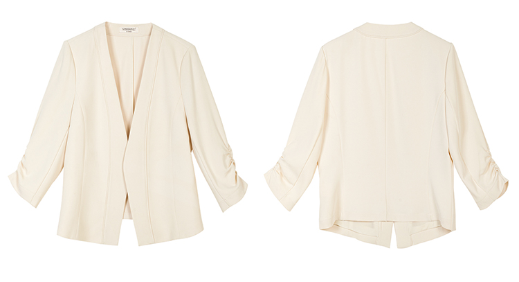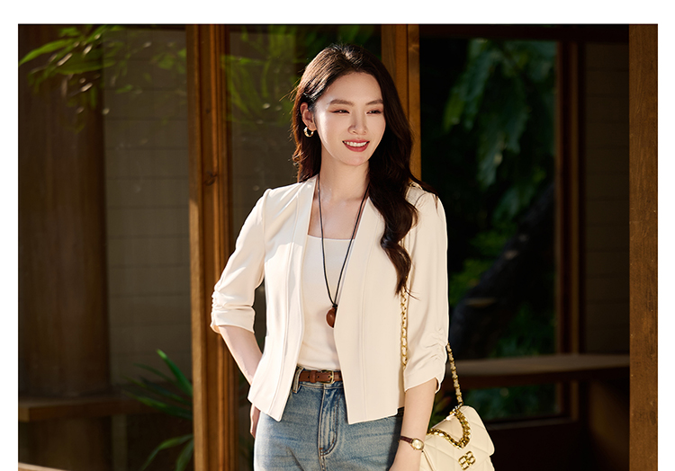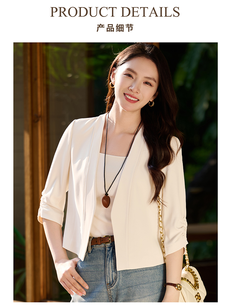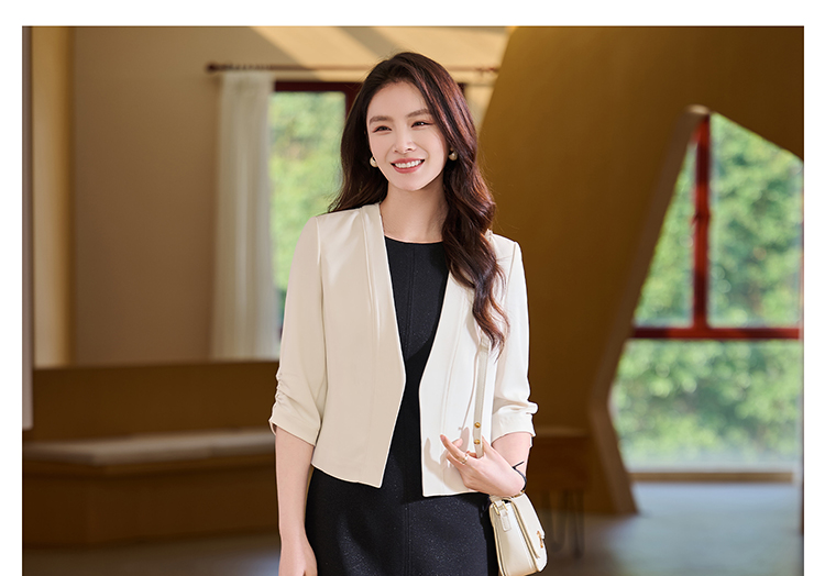 米思阳2026春季新款气质通勤无领西装七分袖短款修身气质西服外套女2112
