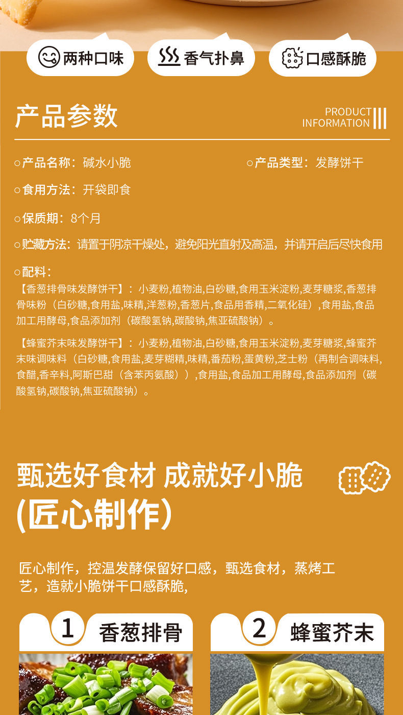 【29.9到手8袋❗️碱水小脆饼干】两种口味任选,香葱排骨味/蜂蜜芥末味,香气扑鼻口感酥脆,下午茶办公室茶点休闲零食L