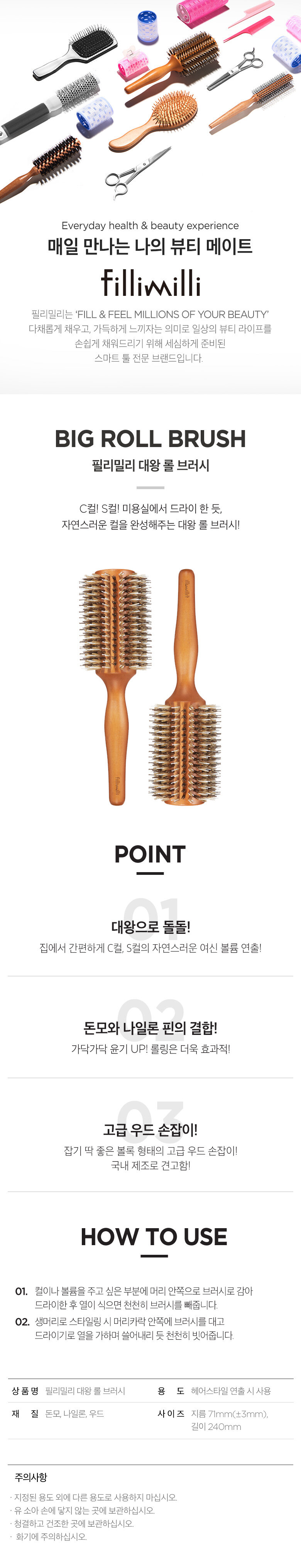 韩国fillimilli自然吹风造型c卷s卷猪鬃毛护发滚梳Olive YoungJPY带授权招加盟代理
