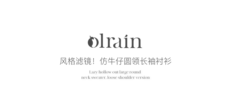 OLrain欧芮儿法式牛仔蓝衬衫女春季2023年新款宽松设计感圆领衬衣