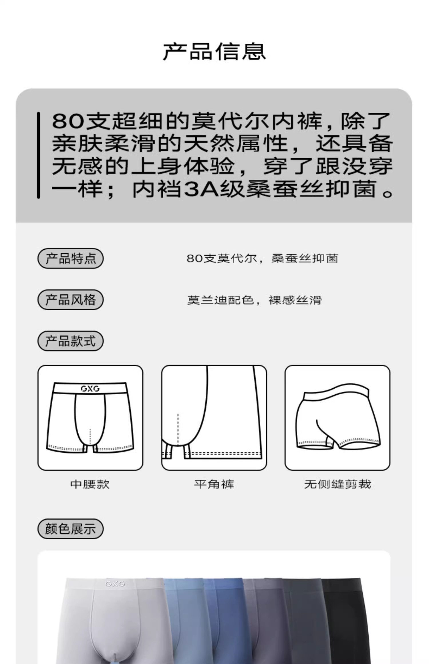 GXG男士内裤【3条装】莫代尔抑菌内裤男冰丝男生短裤