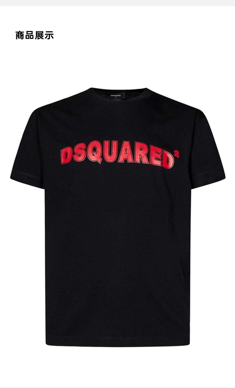 DSQUARED2 男士字母徽标印花棉质圆领短袖T恤 黑色 S71GD1452 D20020 900