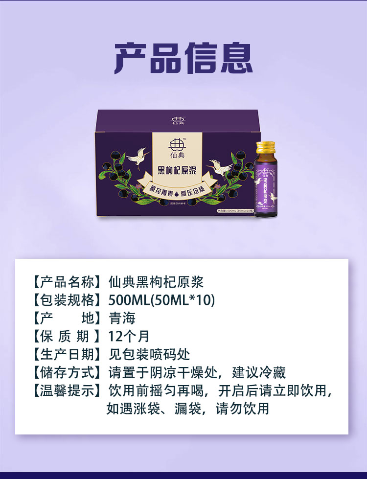 【活动:买3盒黑送2盒红+3个手提袋 】仙典黑枸杞原浆 鲜枸杞原浆