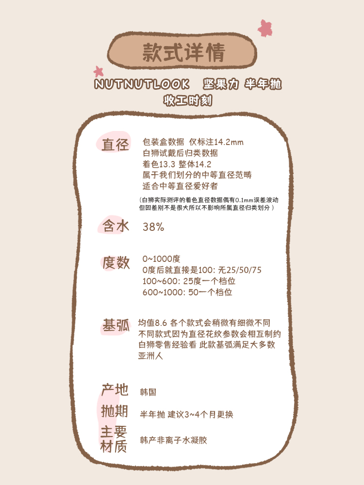 坚果力NUTNUTLOOK收工时刻 14.2mm中小直径美瞳隐形眼镜 白狮旗下自营品牌赠送伴侣盒 半年抛2片