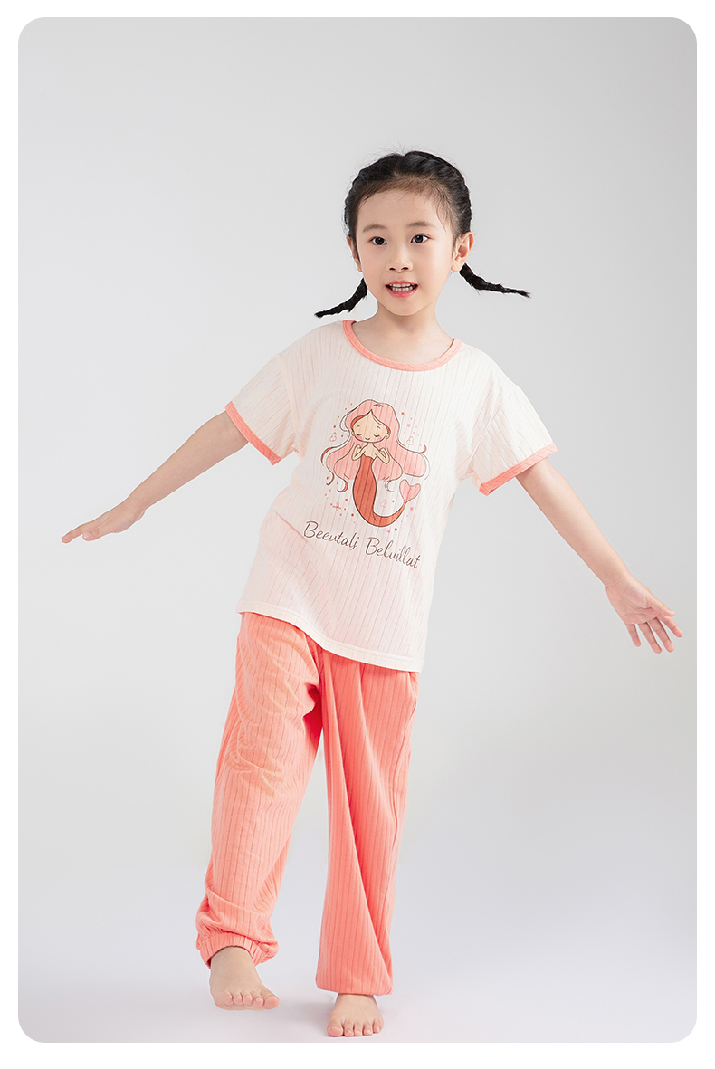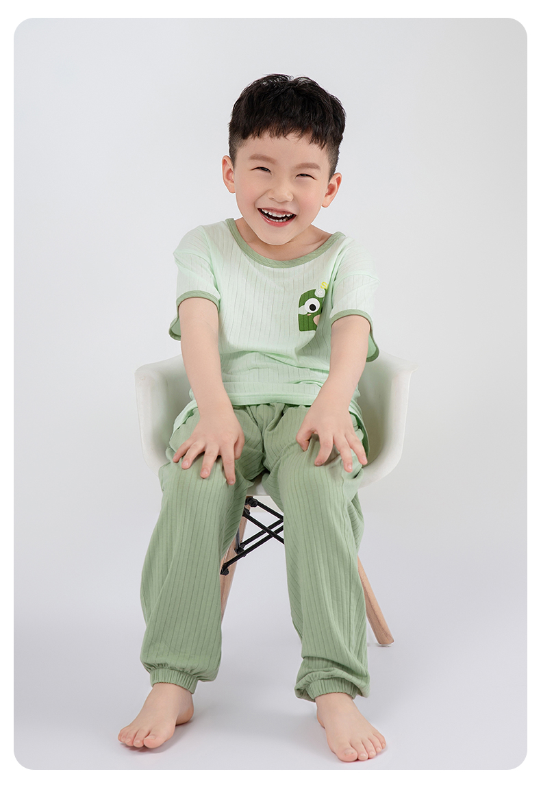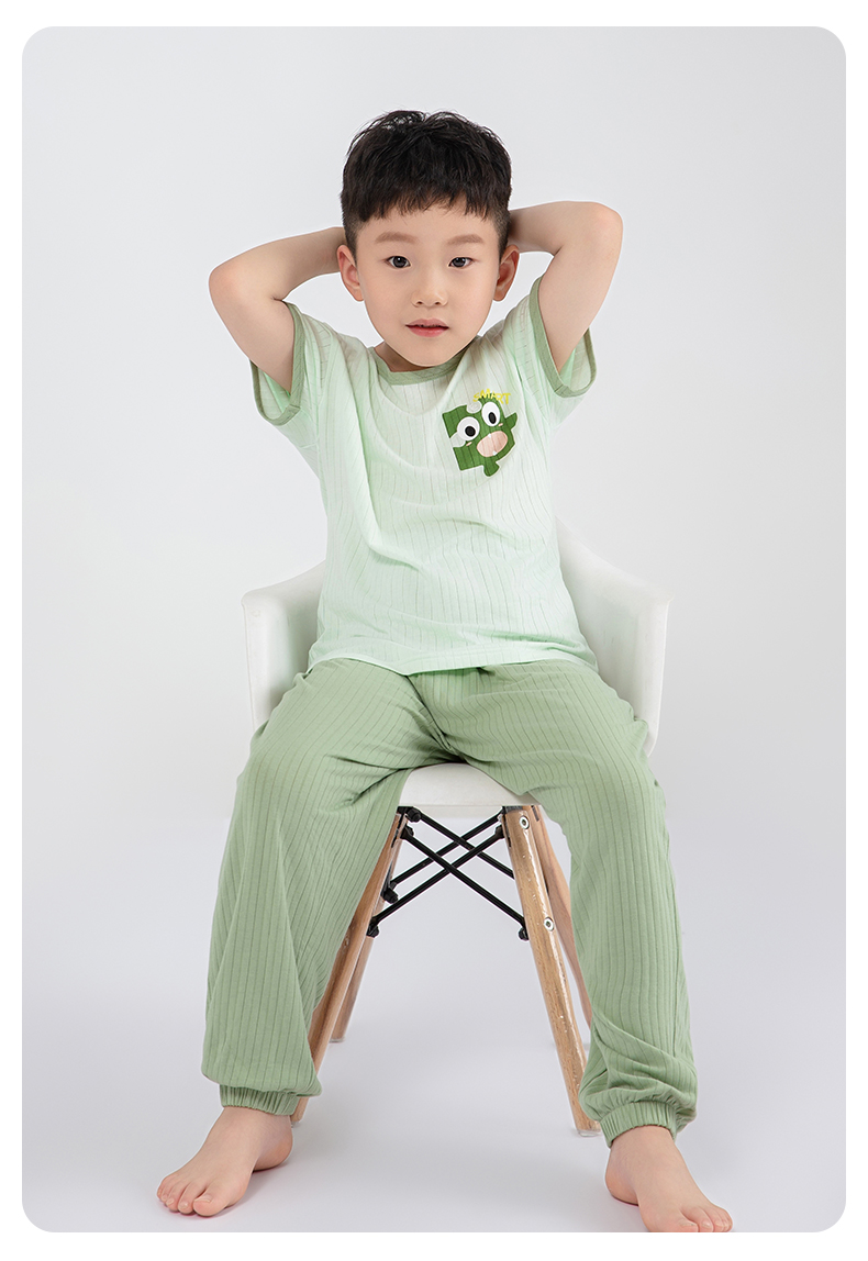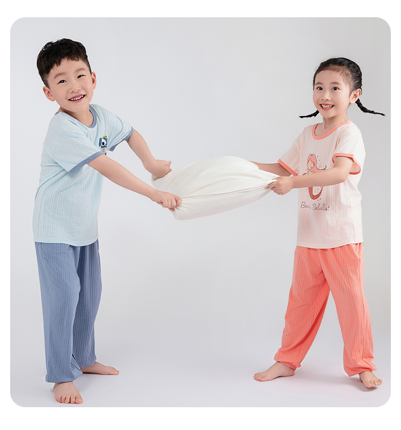 【商场同款】熳洁儿 夏季儿童家居服罗纹针织男童女童短袖长裤睡衣套装24203601/24203606