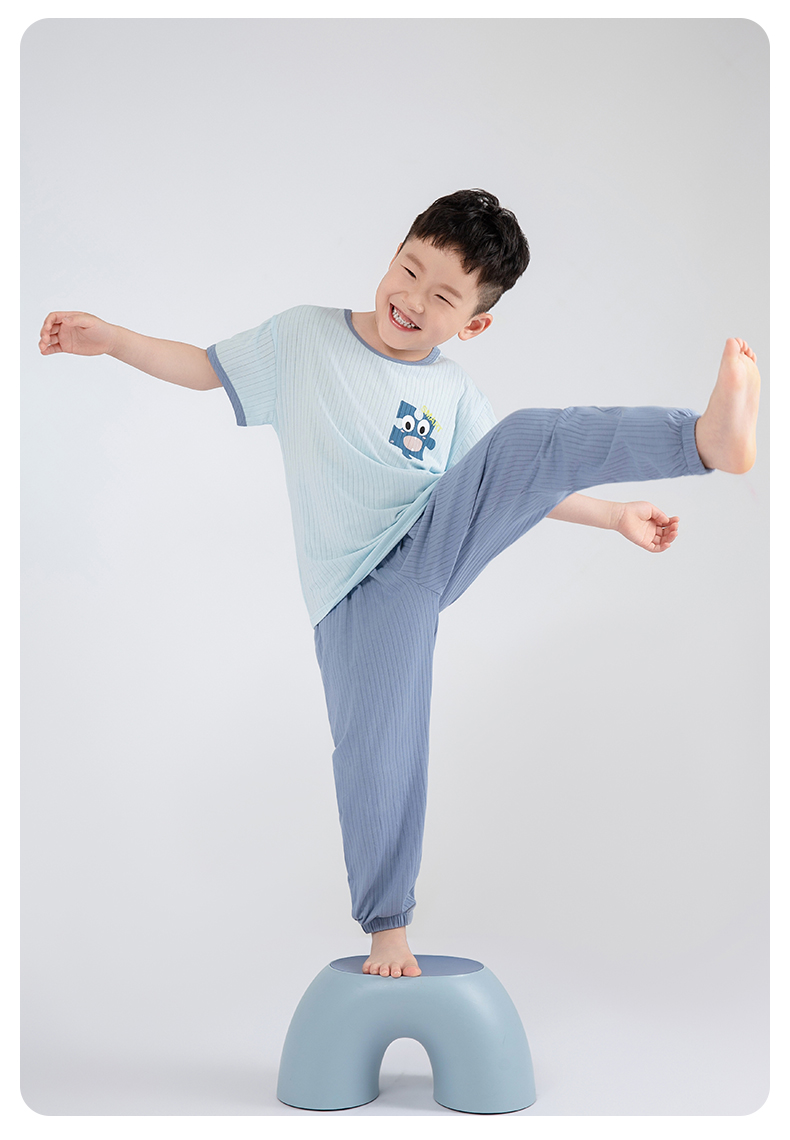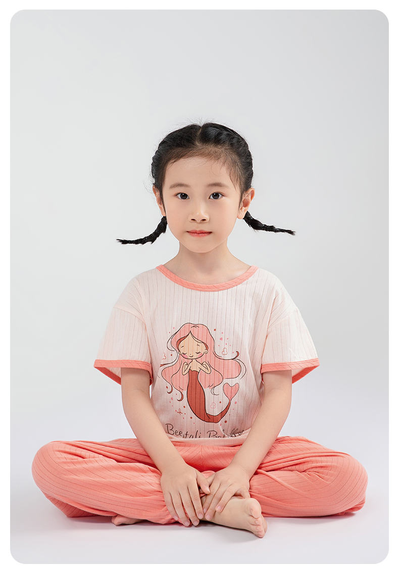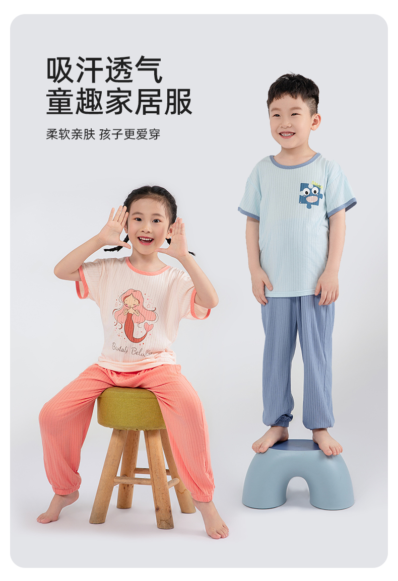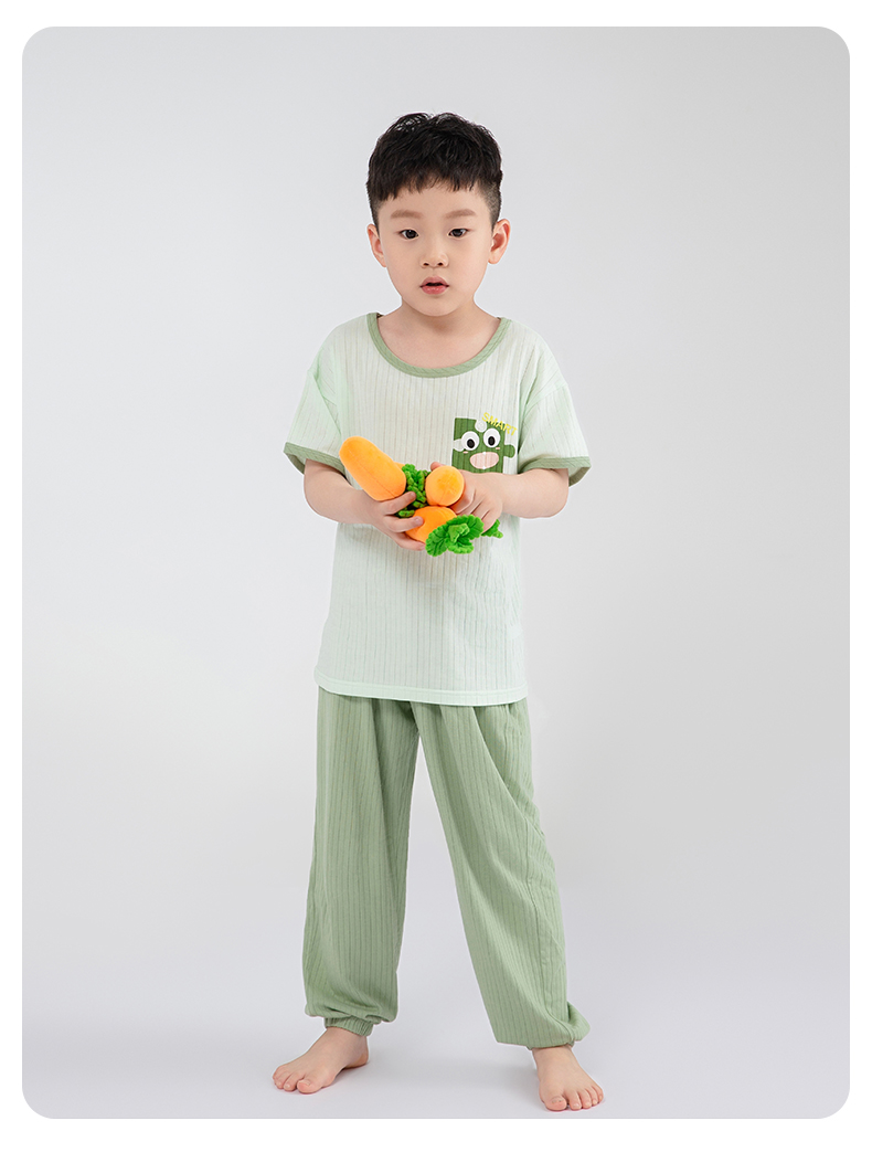 【商场同款】熳洁儿 夏季儿童家居服罗纹针织男童女童短袖长裤睡衣套装24203601/24203606