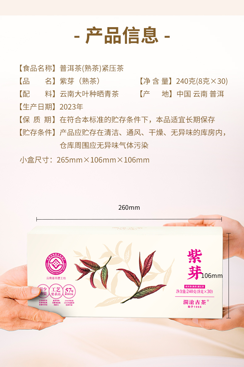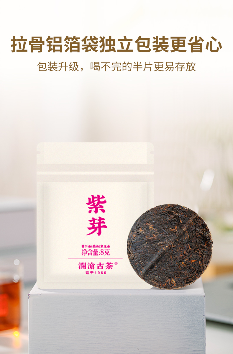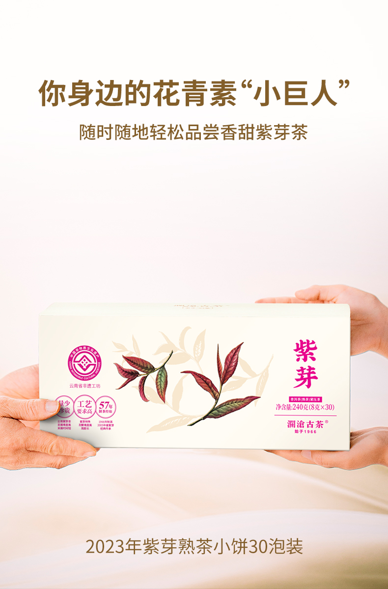 【字节内购】澜沧古茶2023年紫芽熟茶小萌饼紫芽茶盒装8g*30泡装