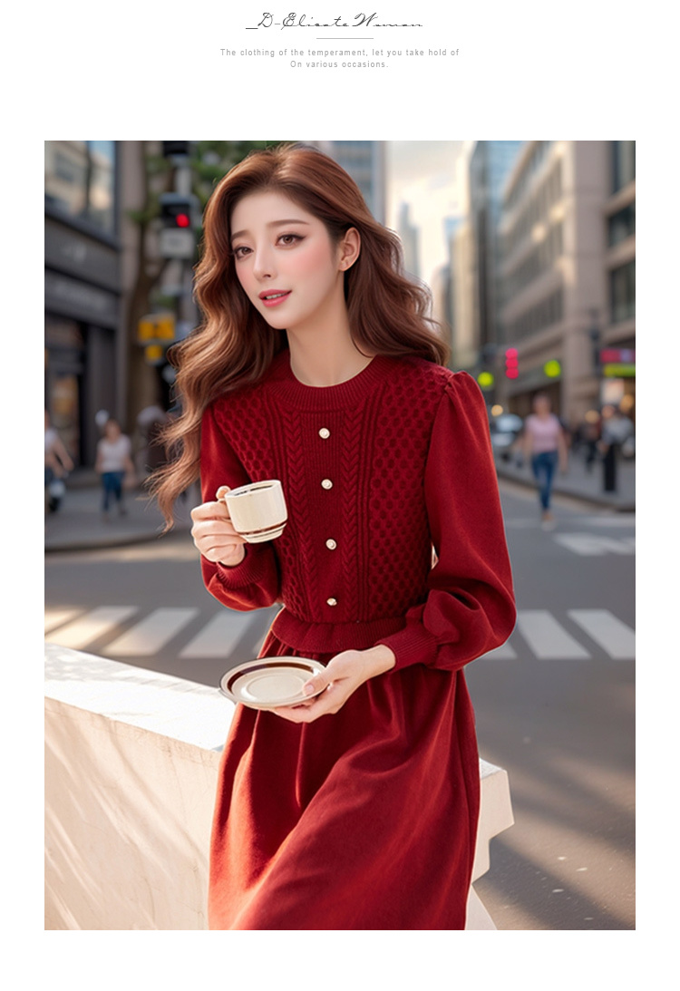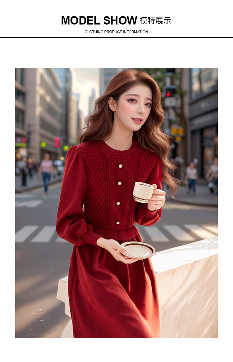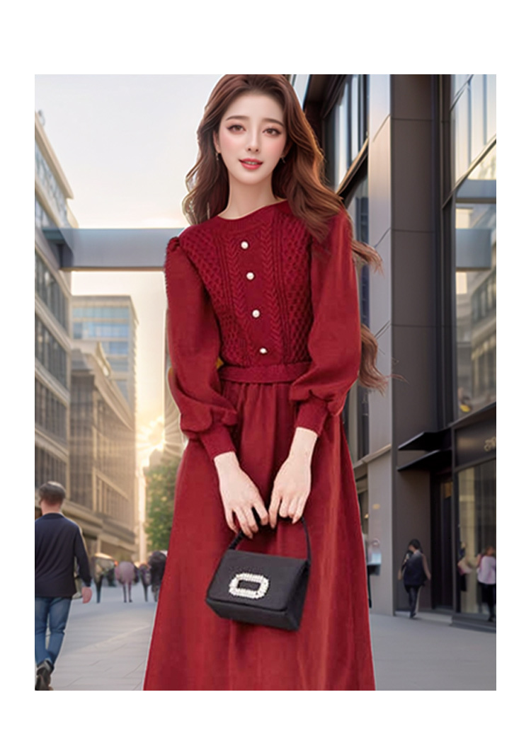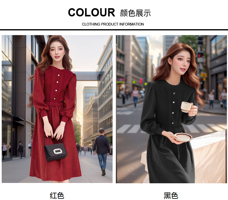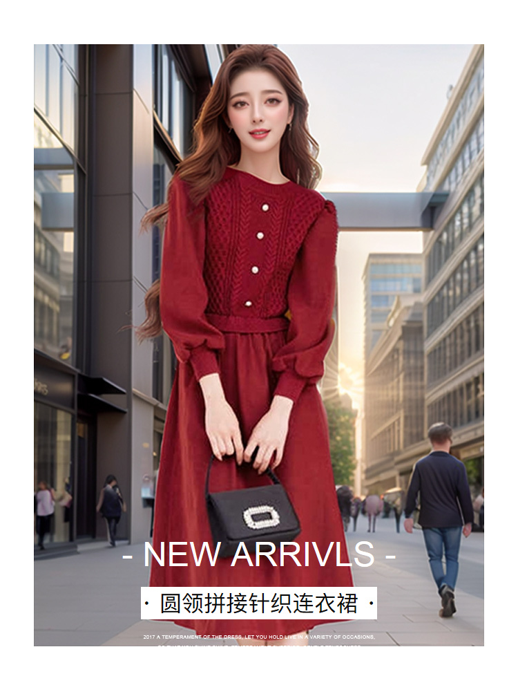奢姿2024年冬季新款大码女装拼接针织裙子胖妹妹气质圆领连衣裙9944826856