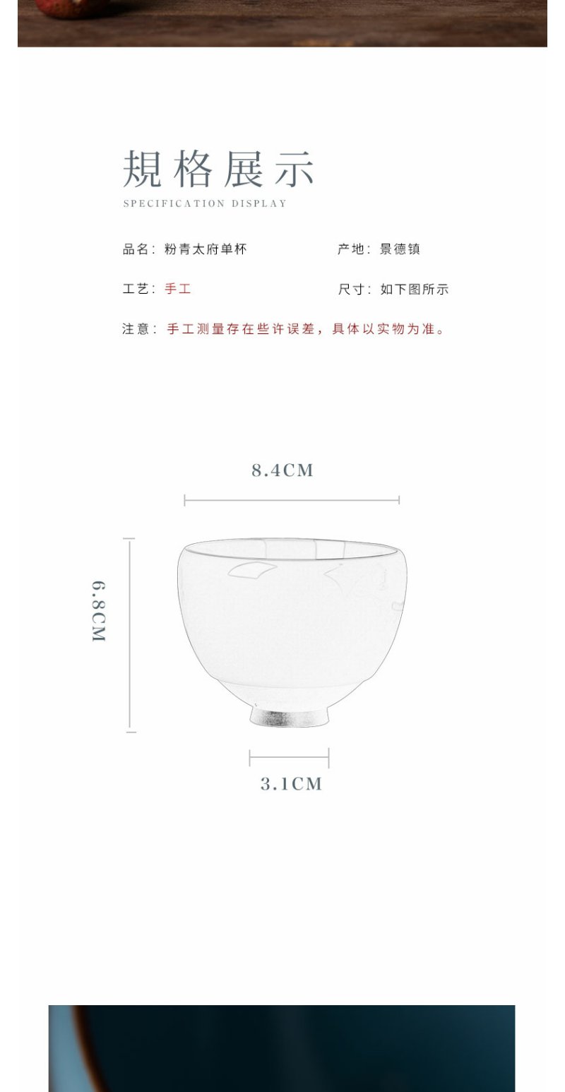 抱翁堂/粉青太府单杯 景德镇抱翁堂—手工茶杯粉青太府单杯主人杯