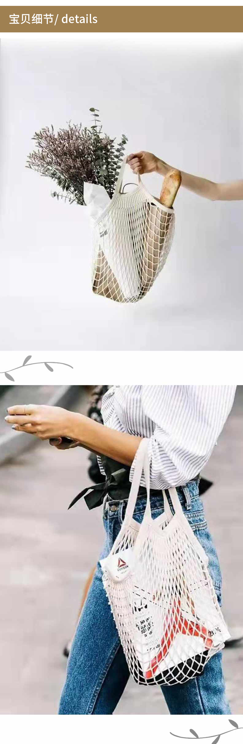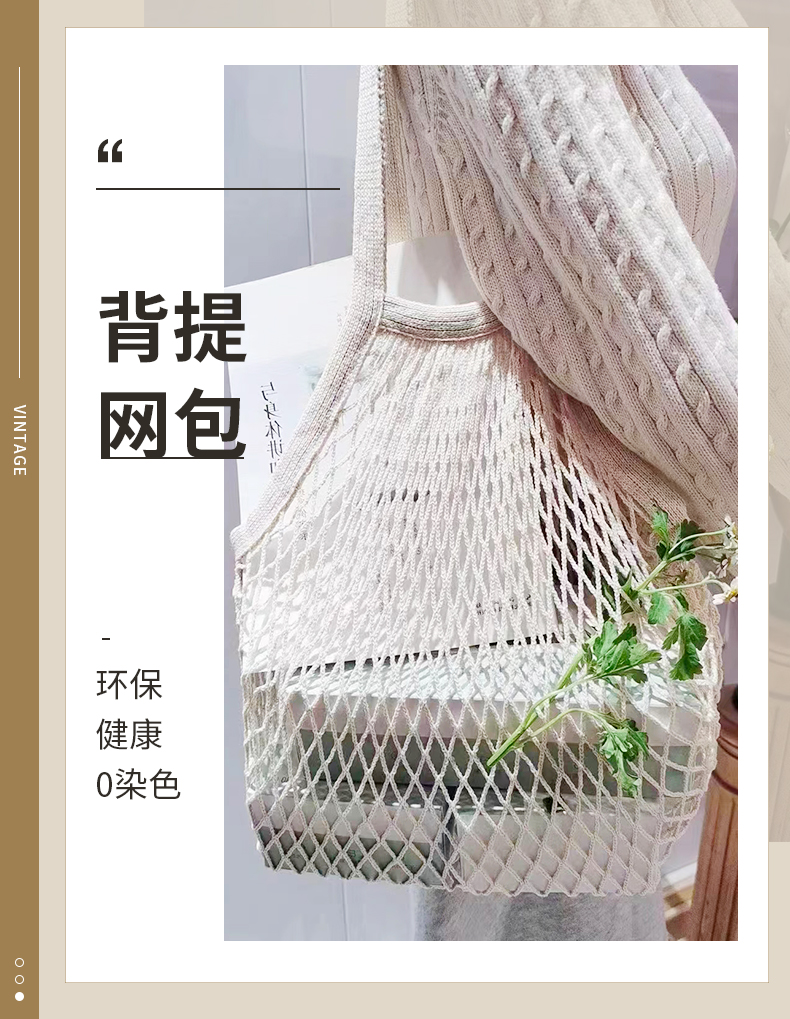 有机棉背提网包(白色) 购物网兜 兜身38*35/提手25cm 亲肤柔和 不刺激 0%染色 素道敦煌天然有机彩棉织造 舒适安全健康
