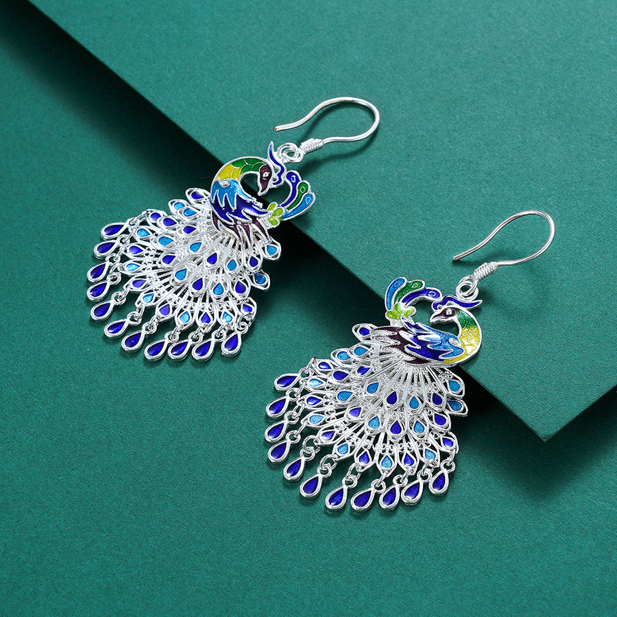 子佩集S990银【鸾凤友】孔雀耳环【CEH000001】花丝珐琅彩2110