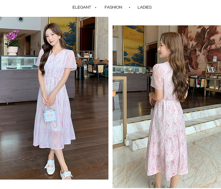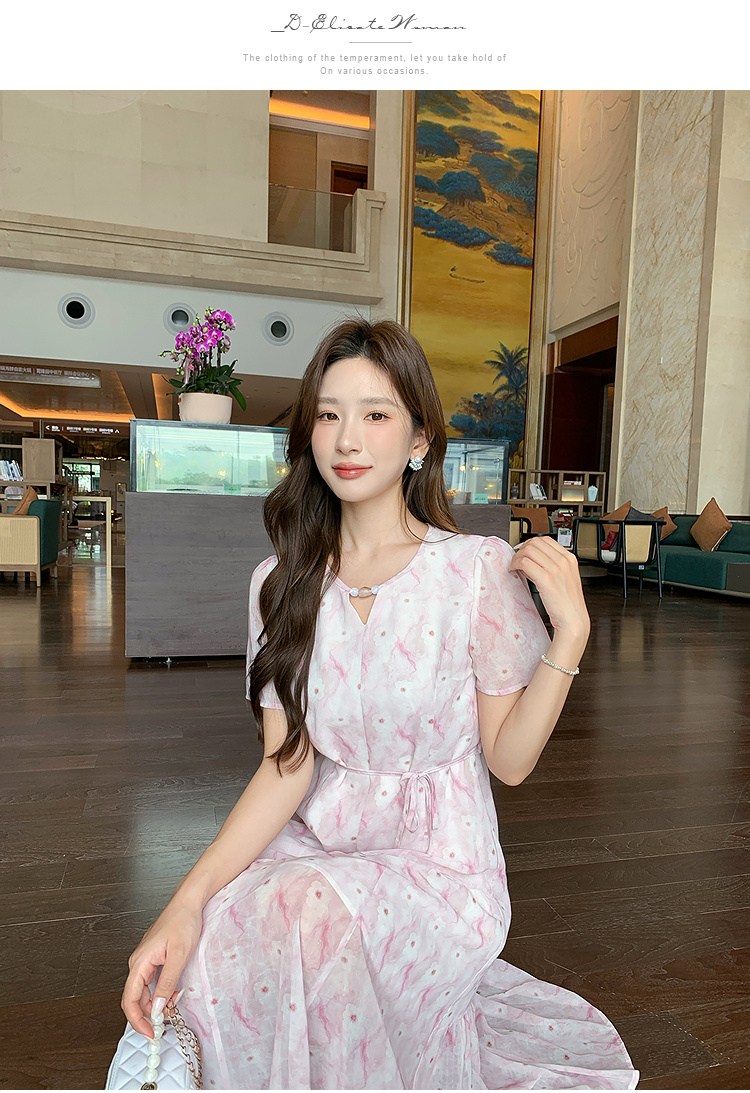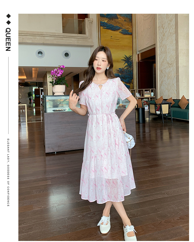 奢姿大码女装2026夏季时尚裙子胖妹妹减龄印花轻奢休闲V领连衣裙9952890596