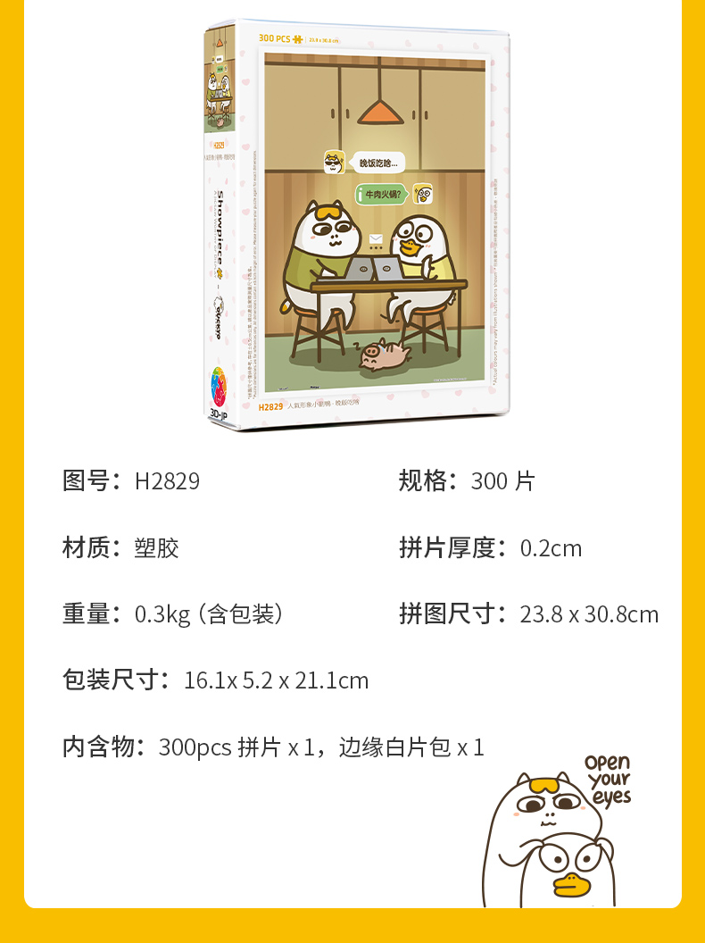300片 平面拼图 塑料拼图 H2829 人气形象小刘鸭-晚饭吃啥