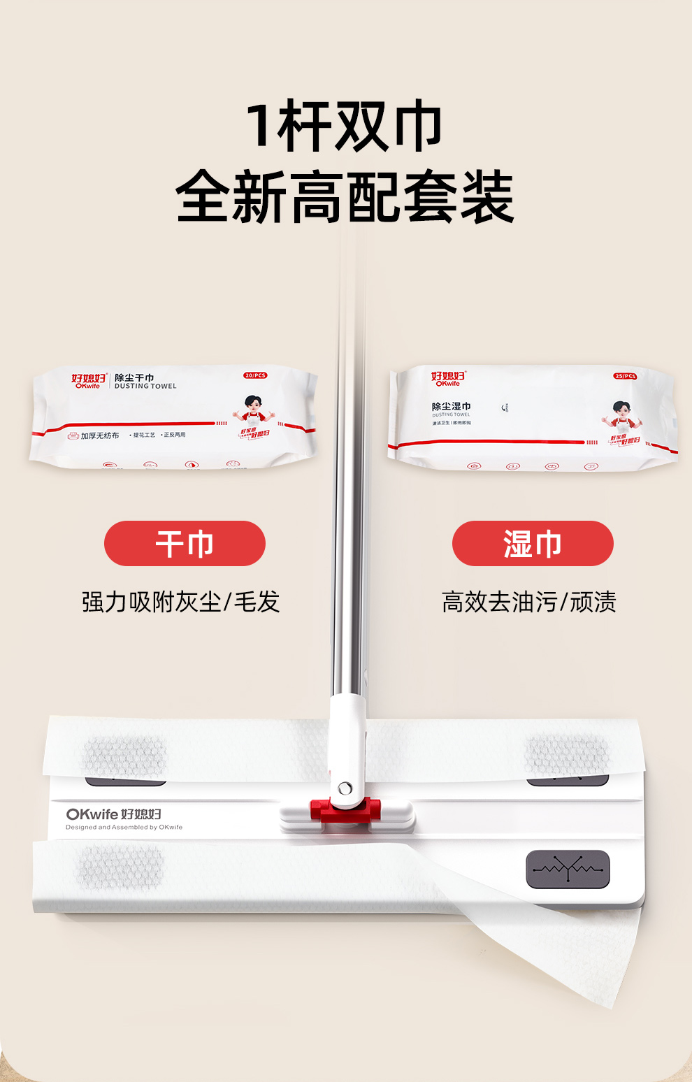 好媳妇懒人除尘拖把静电免洗家用一次性吸尘纸底板一拖净干湿纸平板拖