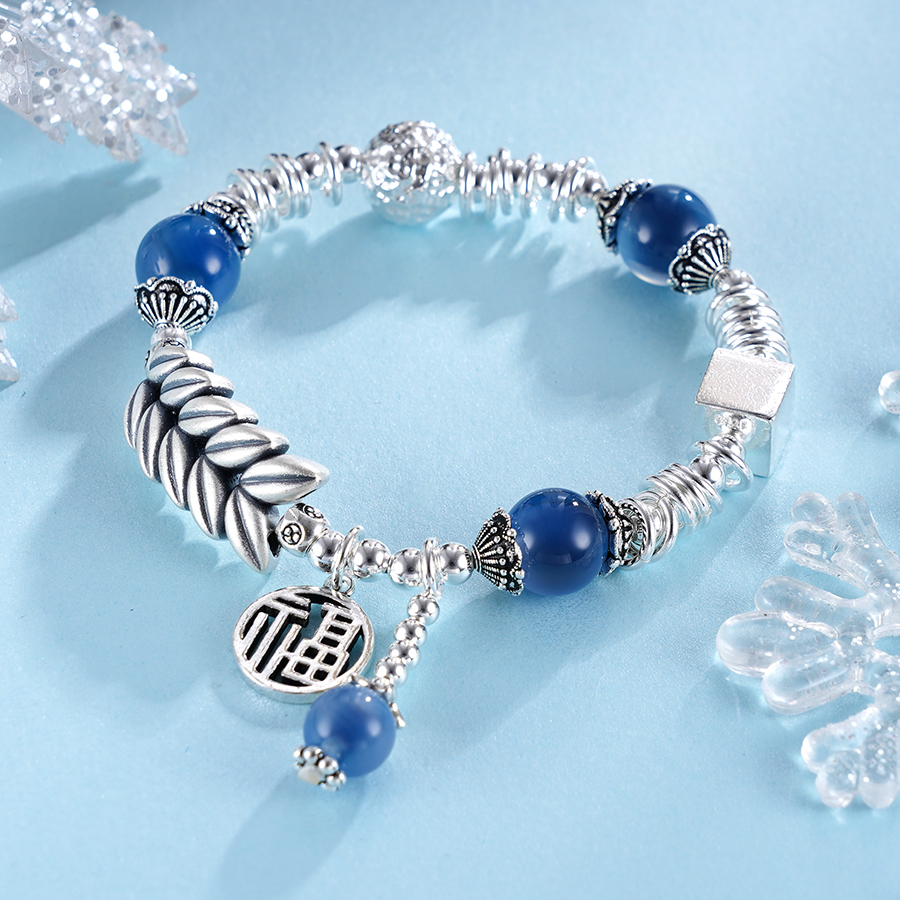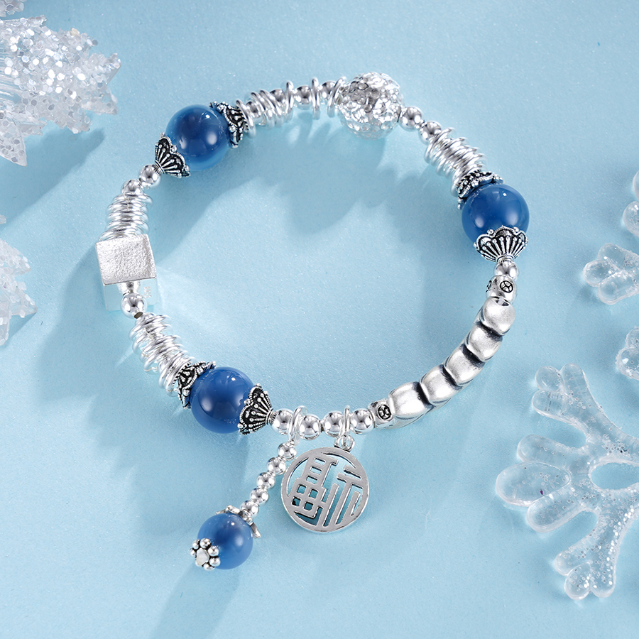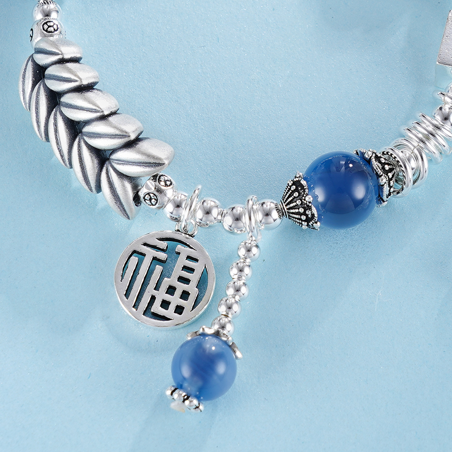 子佩集S925银【岁岁福生】手串【TSB0001-39】纯银手链糖心玛瑙麦穗福字蓝2411