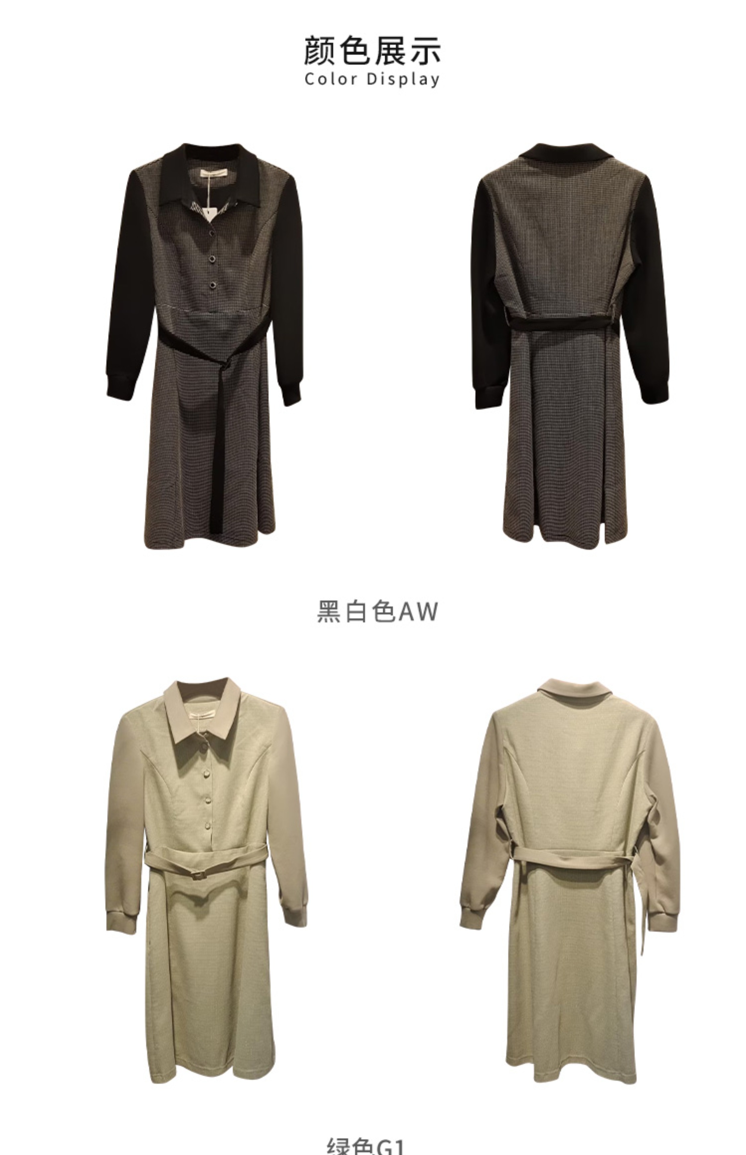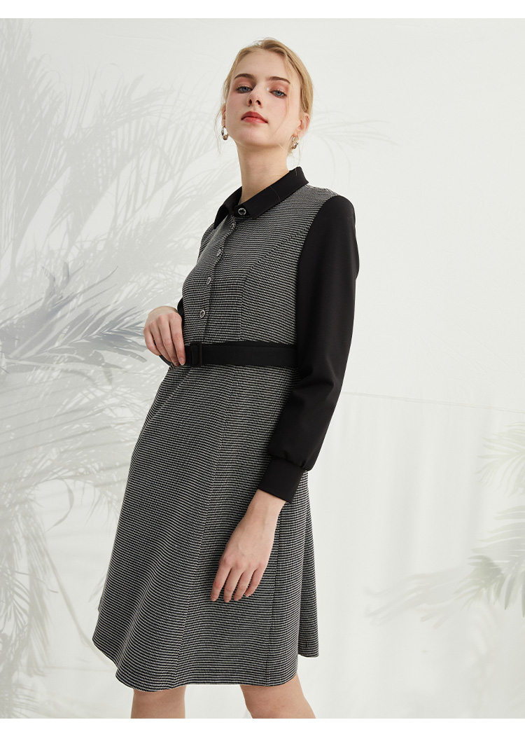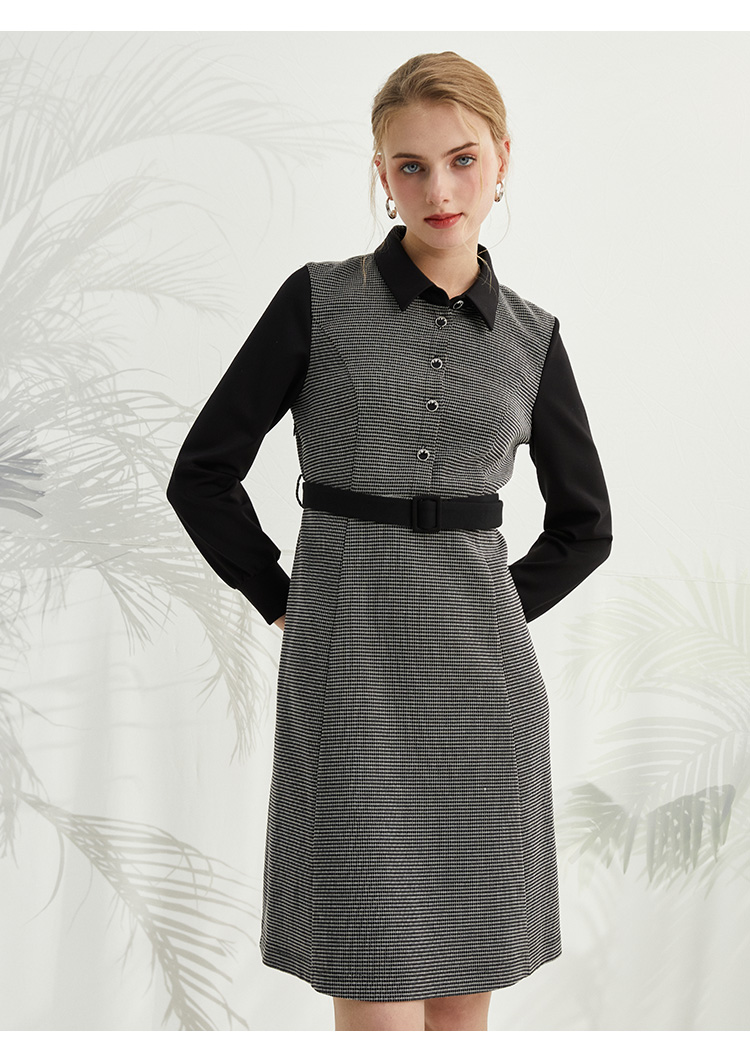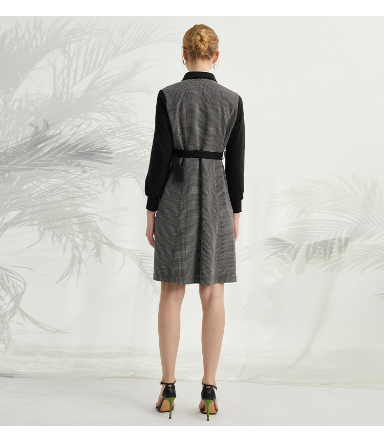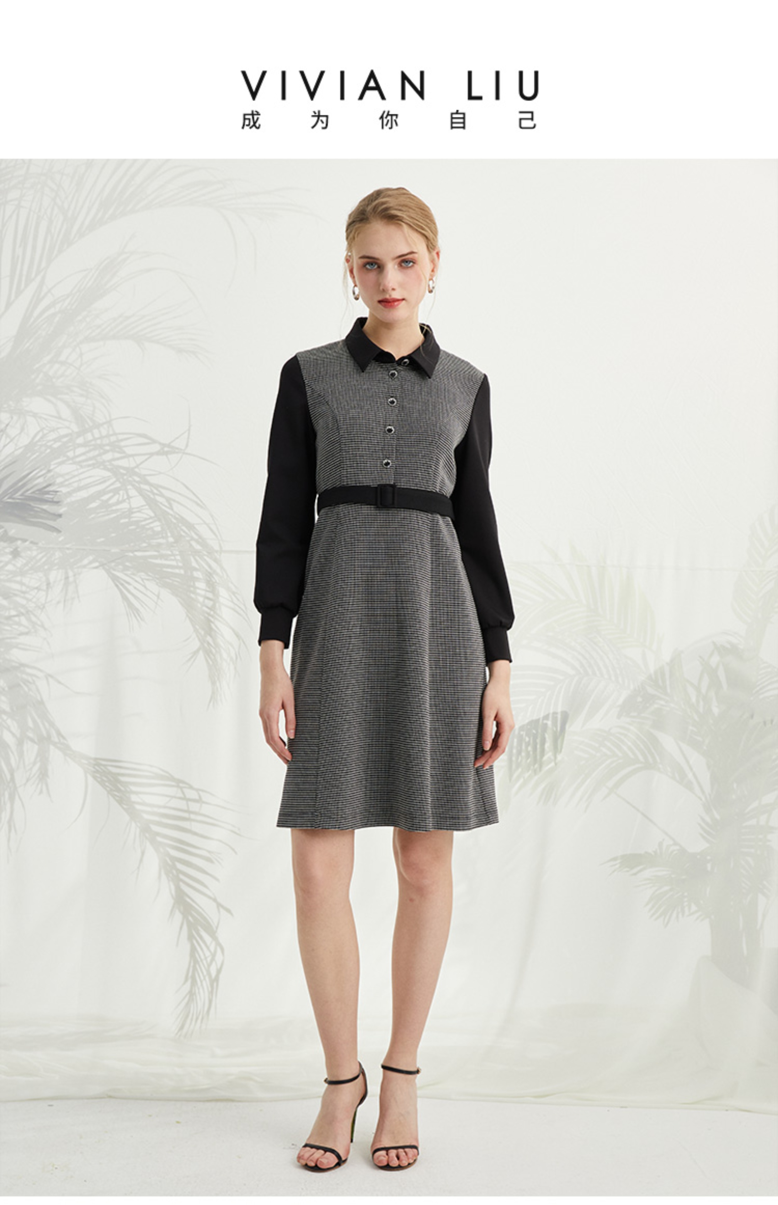 VIVIAN LIU薇薇安刘R2414101夏女装新款翻领腰间系带长袖连衣裙