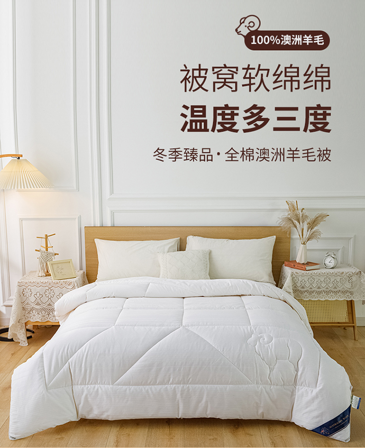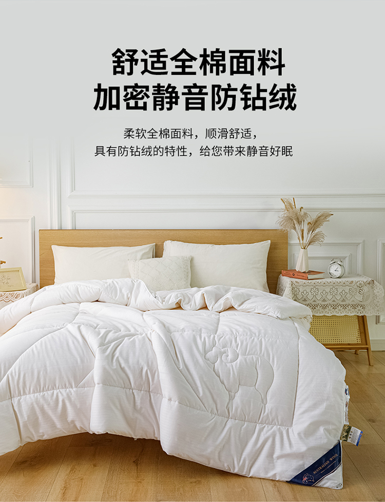 被芯100%澳洲进口羊毛冬被春秋被加厚冬被全棉面料细密防钻毛