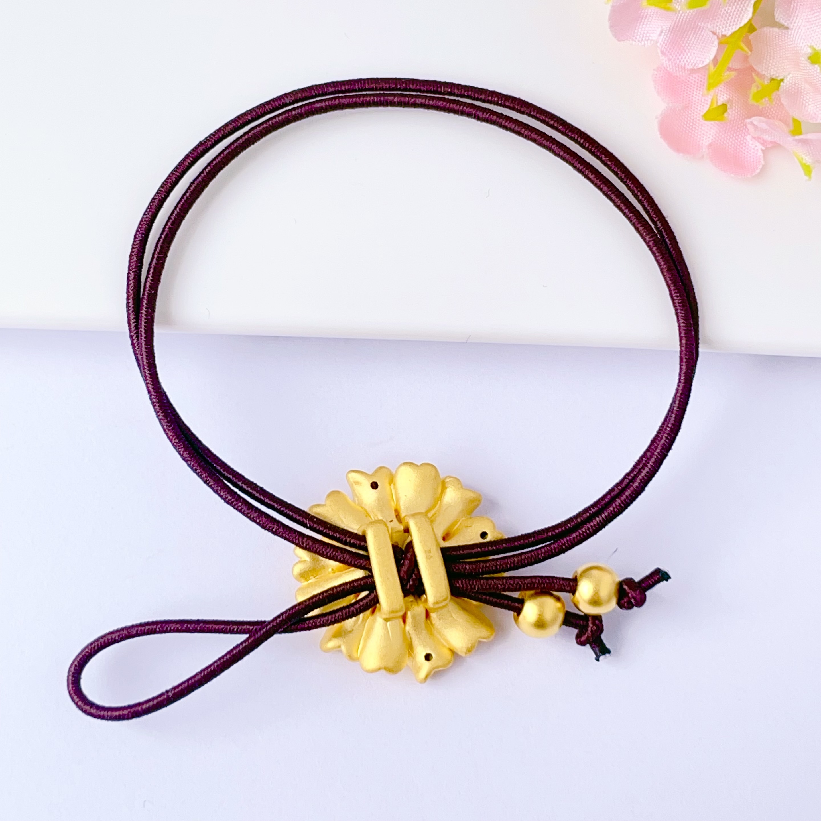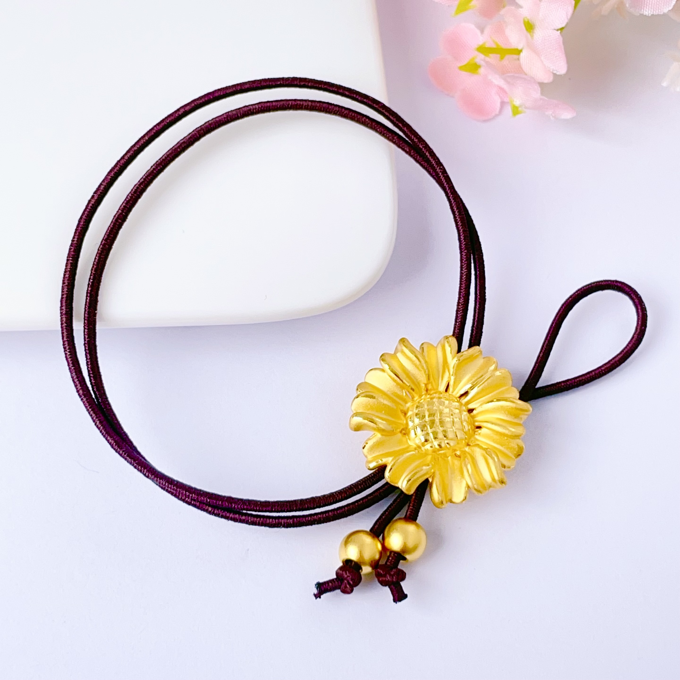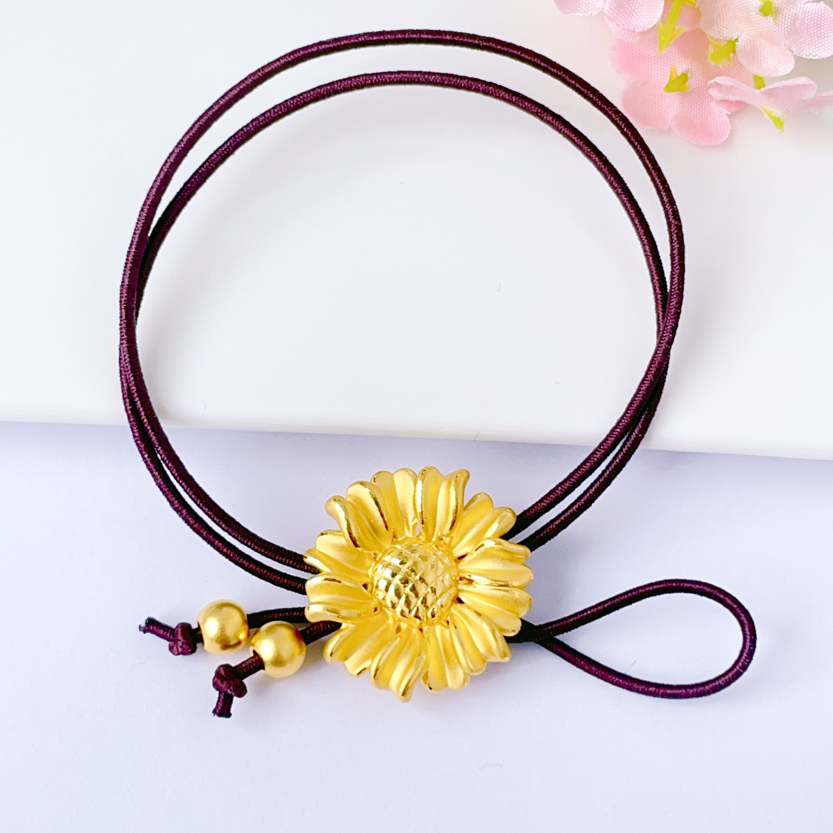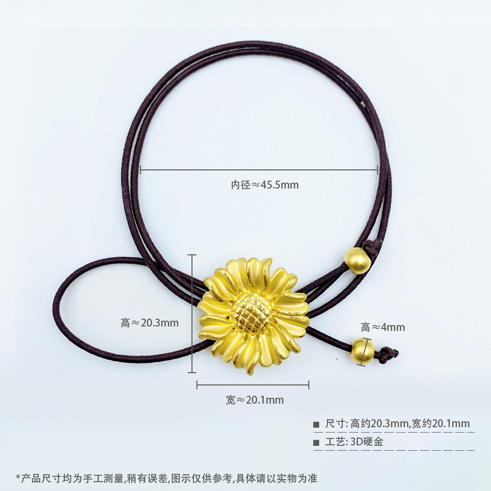 【限时7.5折】【定价黄金】足金 3D硬金双戴款向日葵头绳棕色弹力绳成品手串(AJ3DSC00093)(预售产品下单后不退款不退货不换货不补差价)(预售产品下单后不退款不退货不换货不补差价)