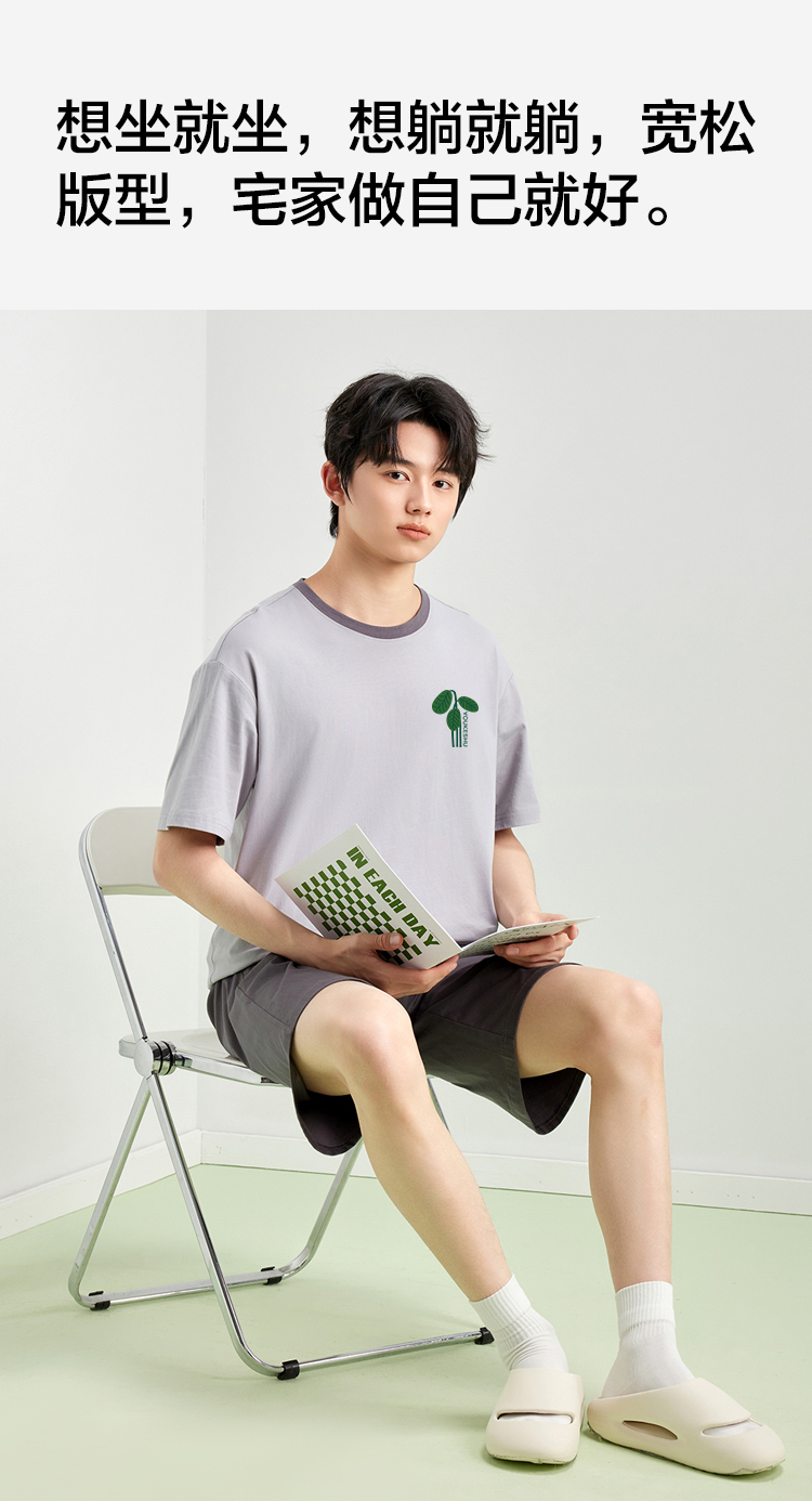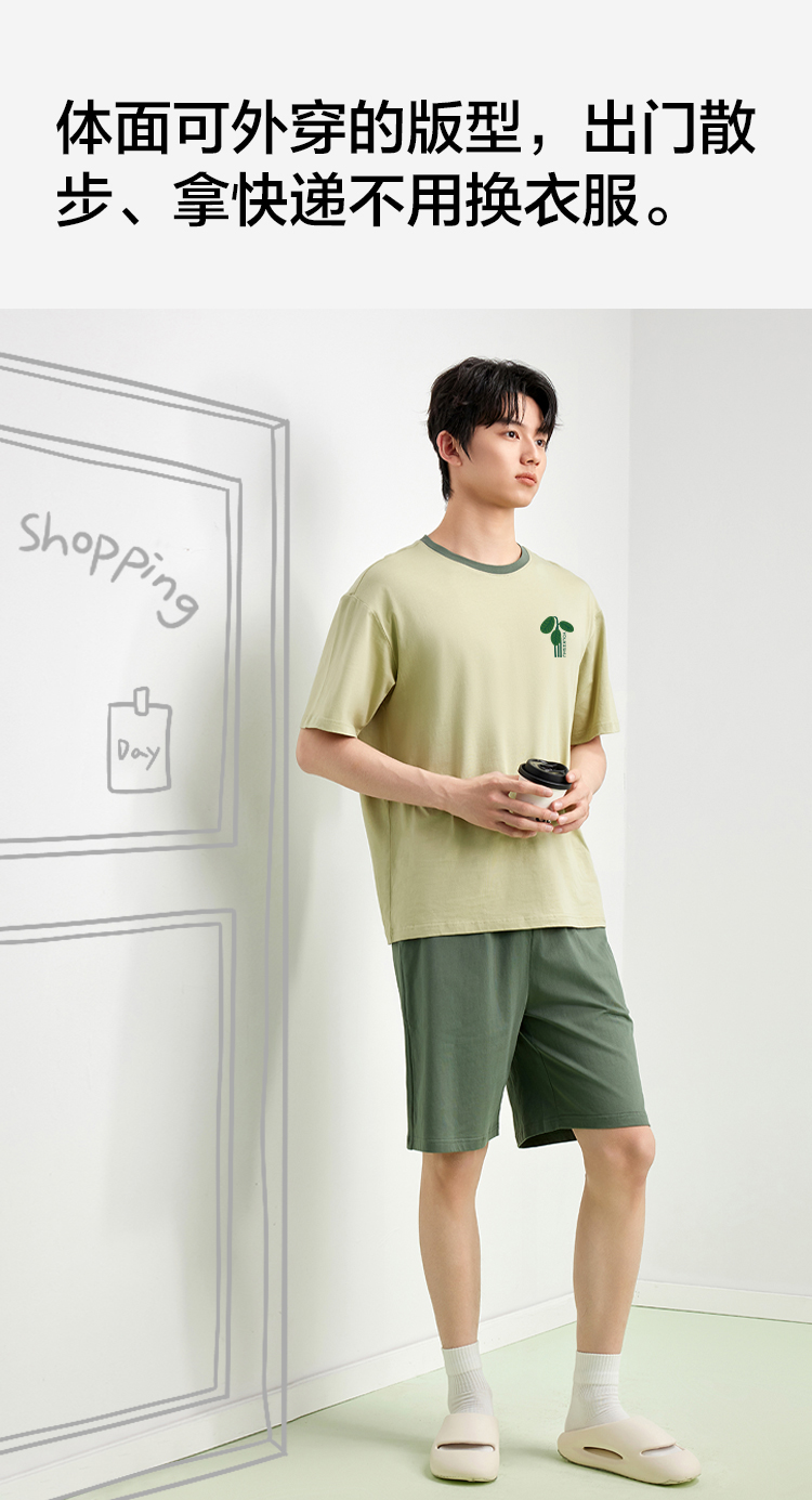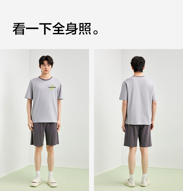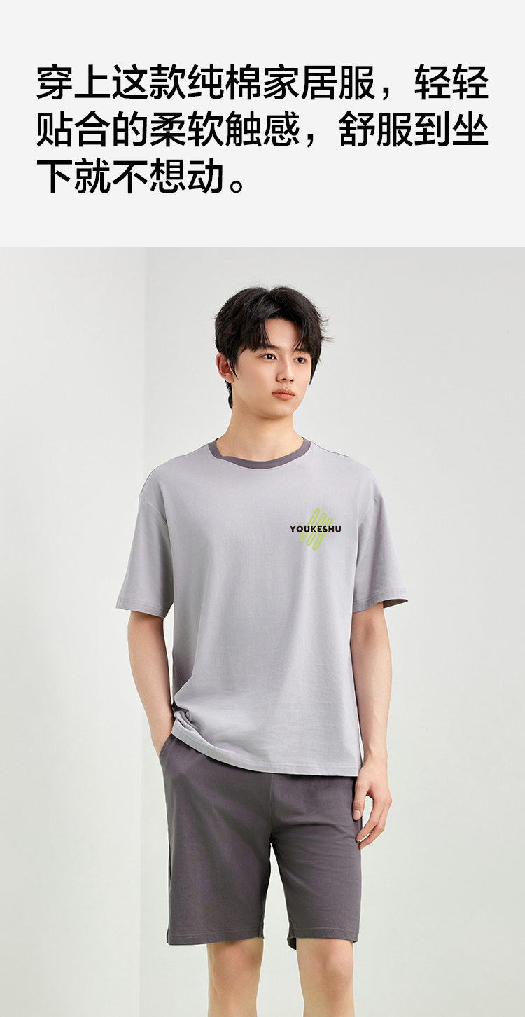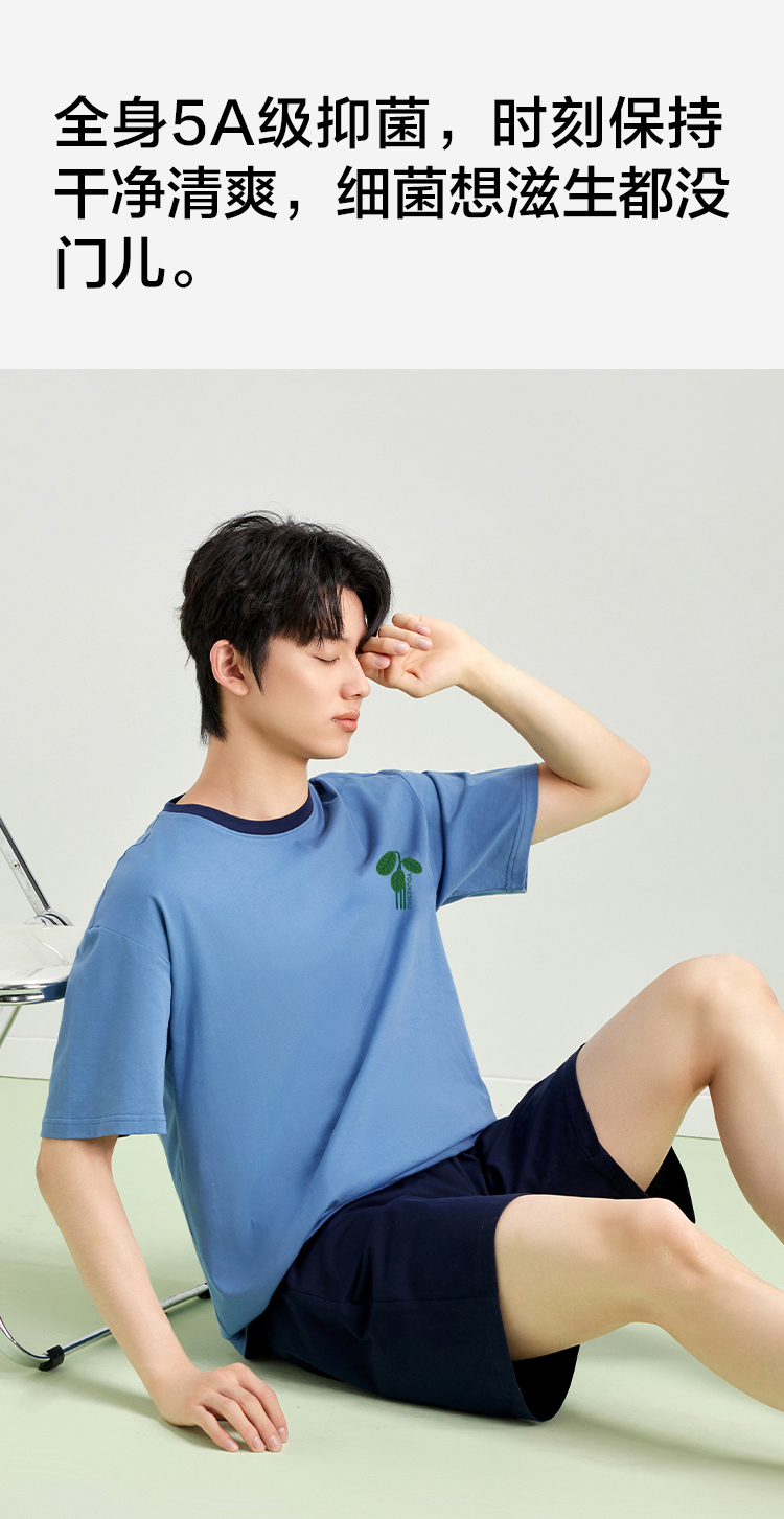 【5A抑菌 100%棉】【有棵树】男士夏季短袖短裤纯棉家居服套装