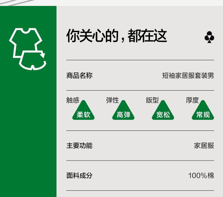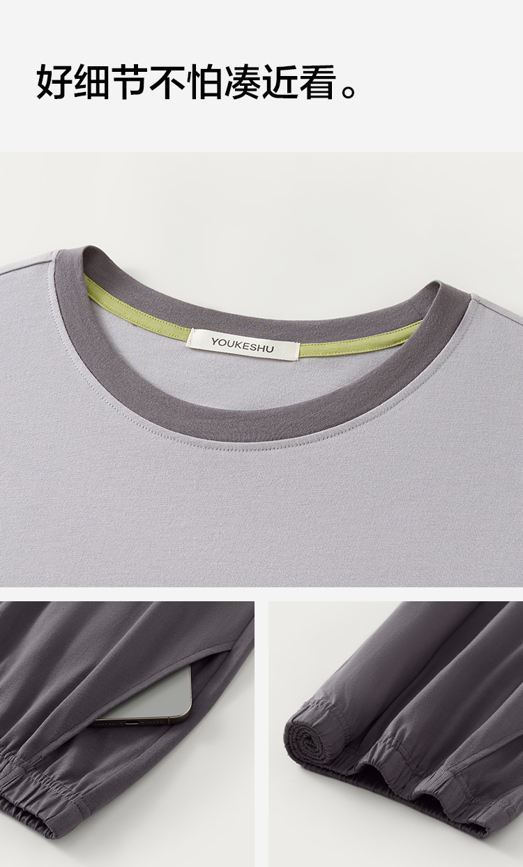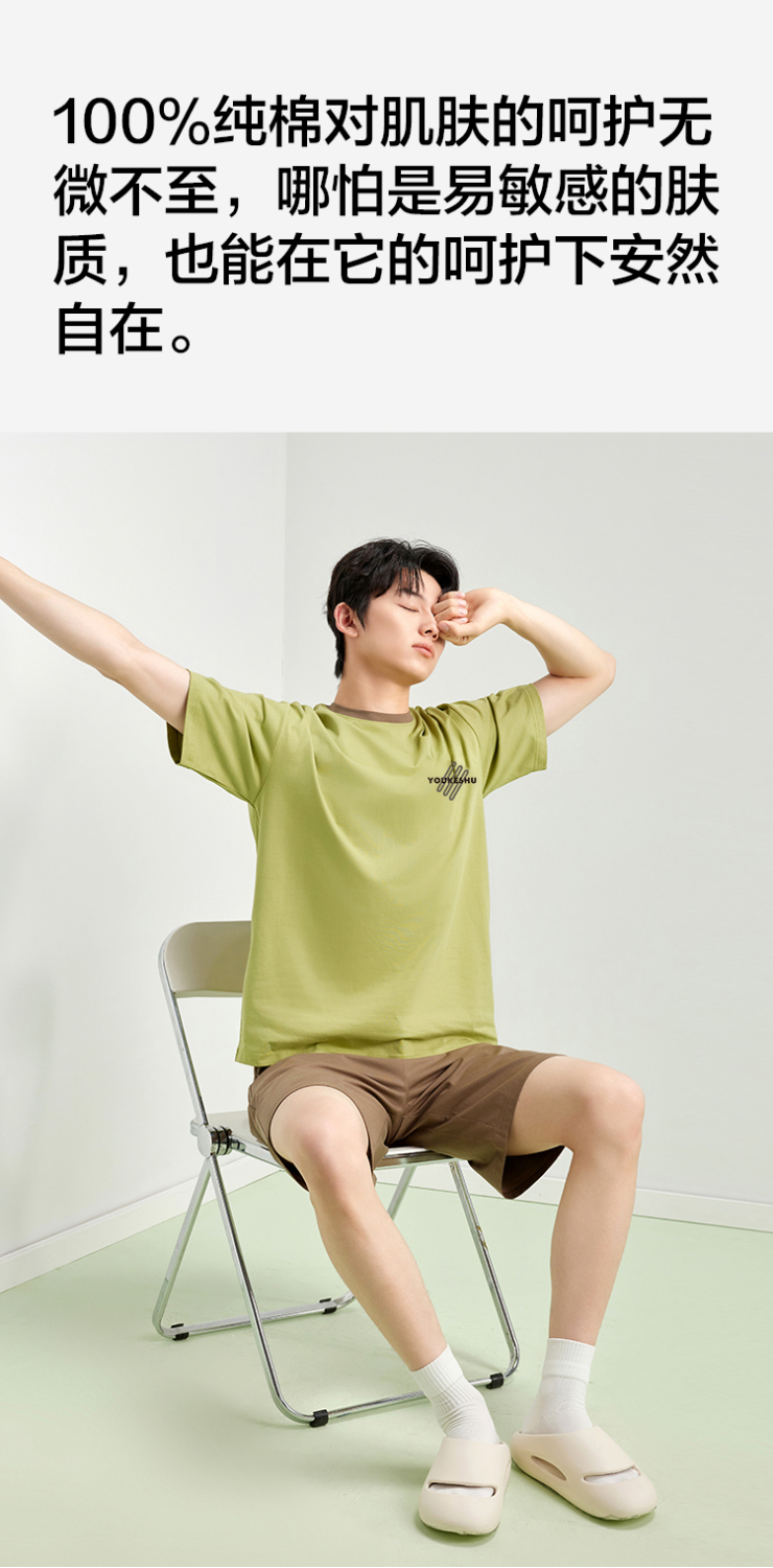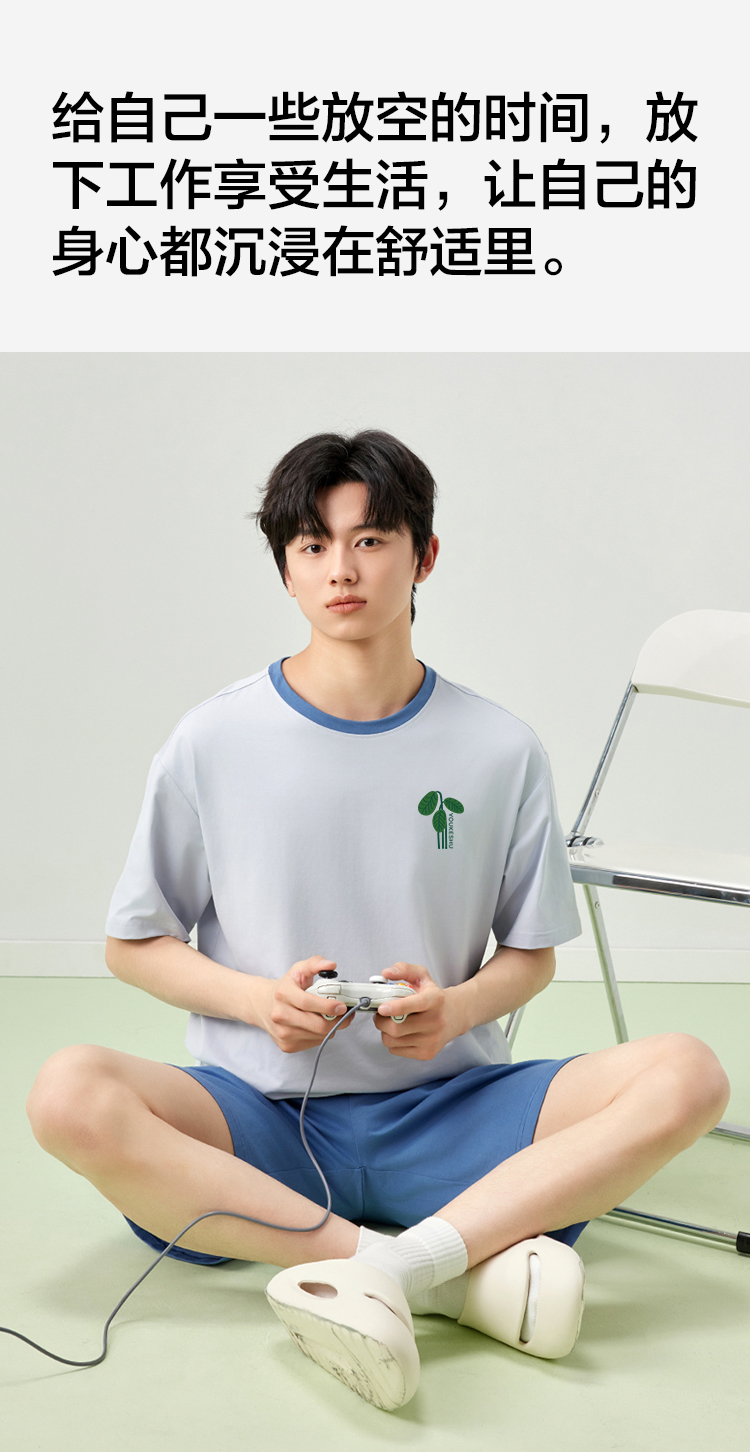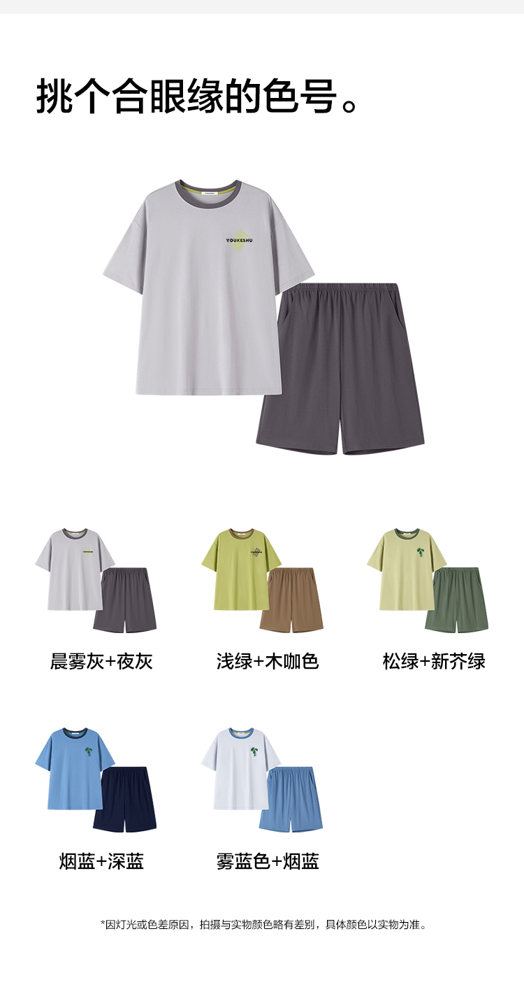 【5A抑菌 100%棉】【有棵树】男士夏季短袖短裤纯棉家居服套装