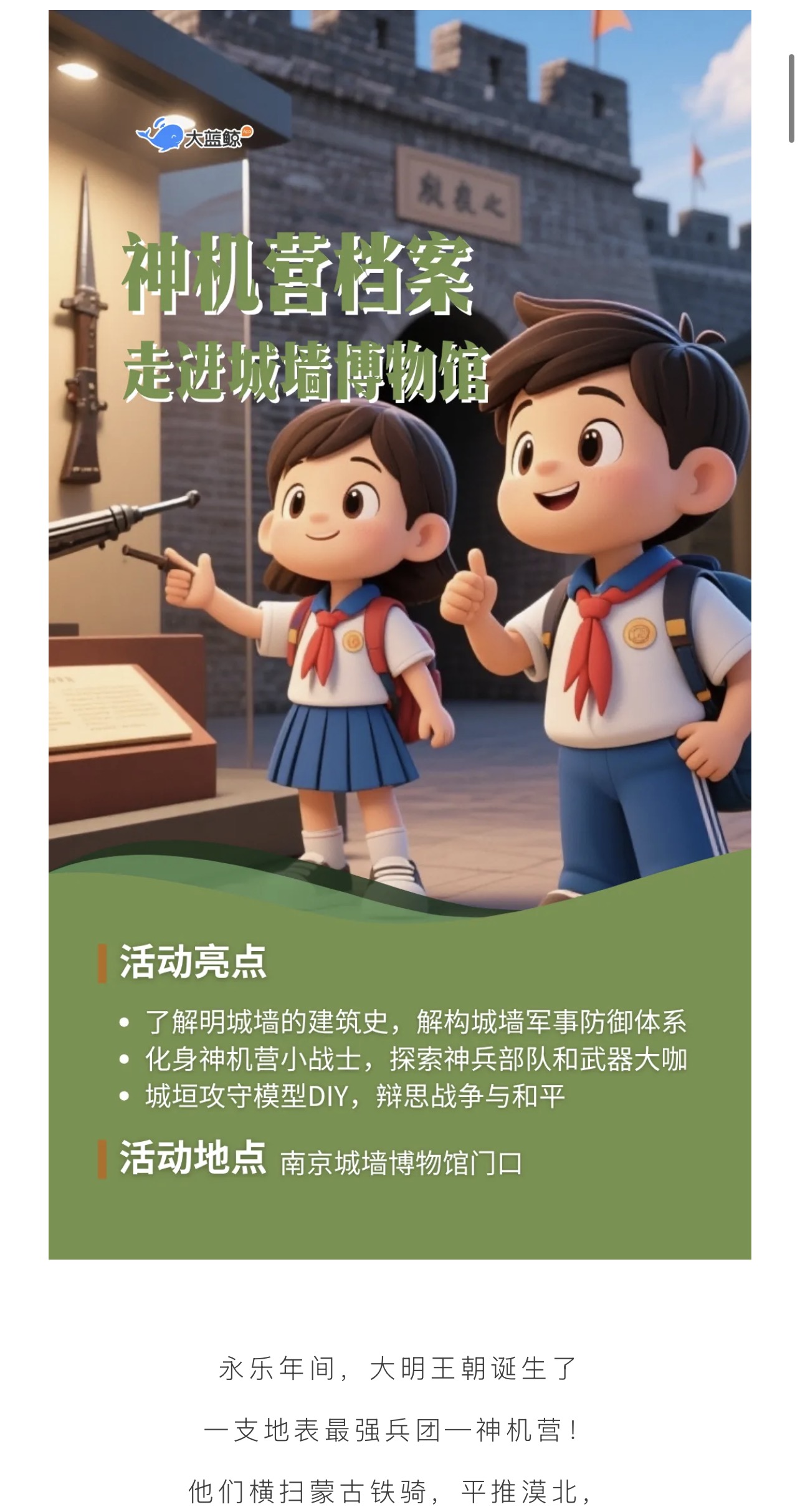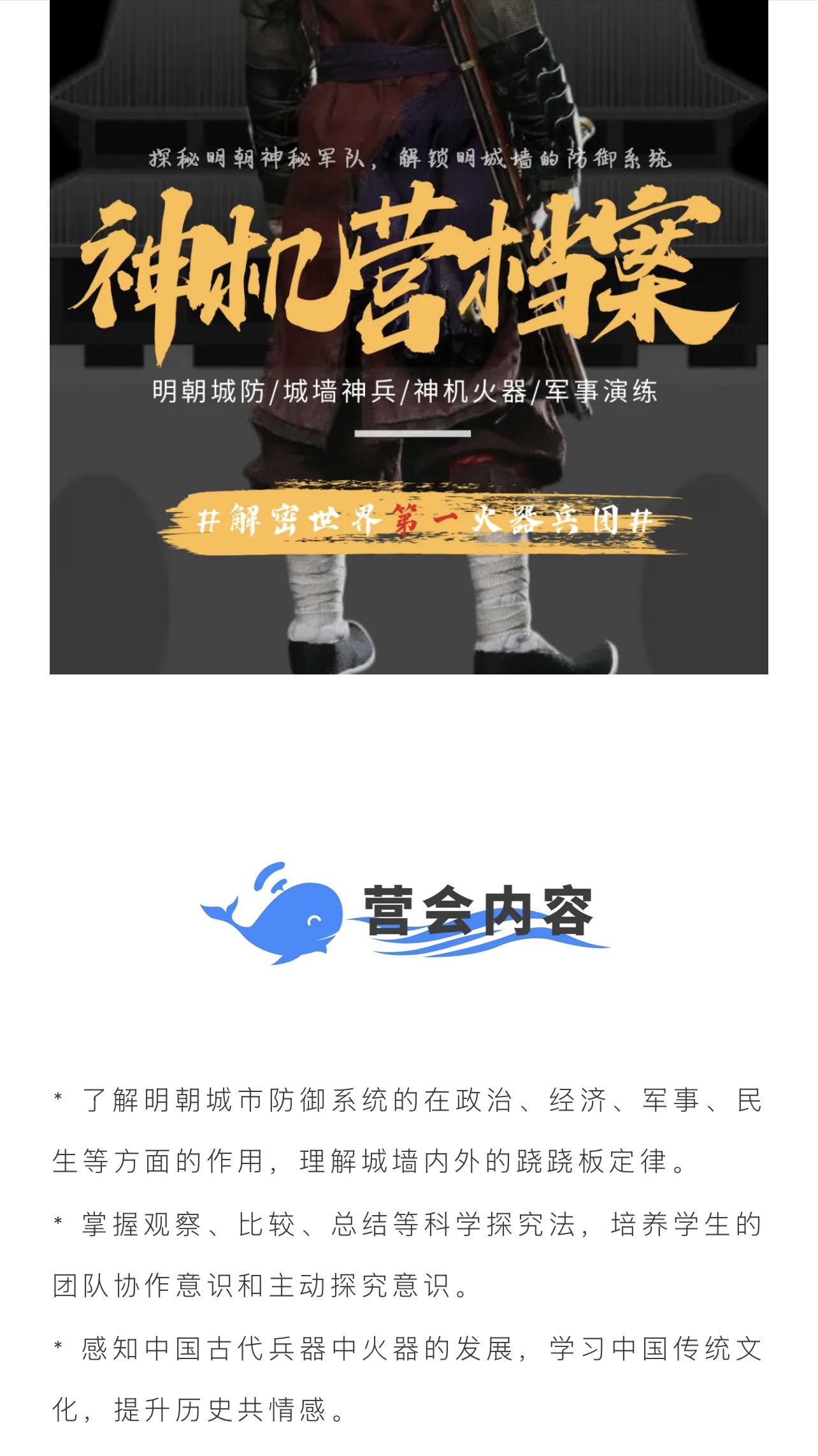 大蓝鲸爱研学|【独立半日营】神机营档案,探秘明朝神秘军团,解锁明朝最强防御系统!