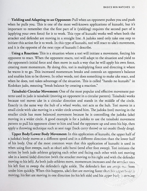 你将学习如何理解训练强度的三个层次,侦察和阅读你的对手,制定战术,以恢复和保持你在得分上的领先地位,管理节奏,速度和位置,以及更多柔道是基于运动和生物力学的合理原则。了解一种技术是如何起作用的,为什么起作用,在竞争压力下会提供坚实的优势。超过450张照片,史蒂夫将解释正确的方法来利用成功的投掷管理过渡和防守,积极的防守,赢得比赛,地面战斗和打破你的对手,防御和发起手臂锁,锁和扼杀柔道要成功,运动员和他们的教练需要明确的目标和知情的知识,在柔道比赛的不断变化的动态做什么。