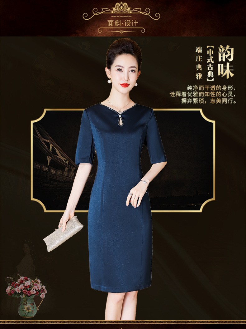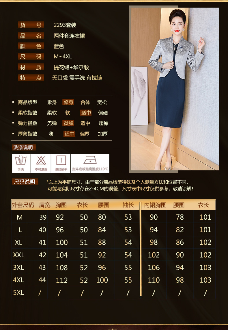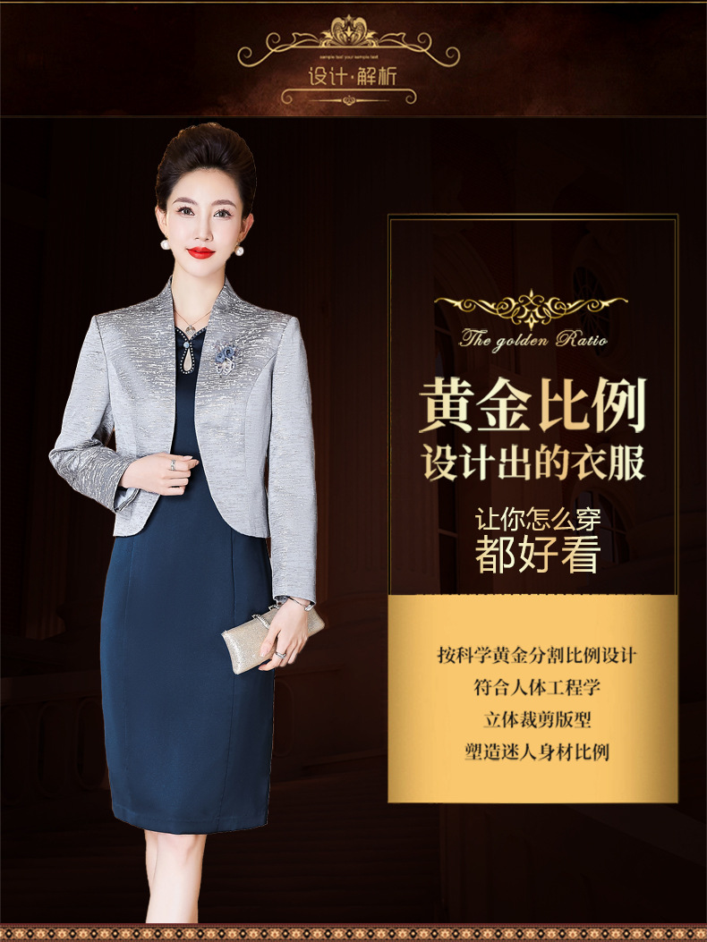 经典青雀蓝套装连衣裙,中年高贵优雅妈妈装婚宴礼服套装裙LC-2293
