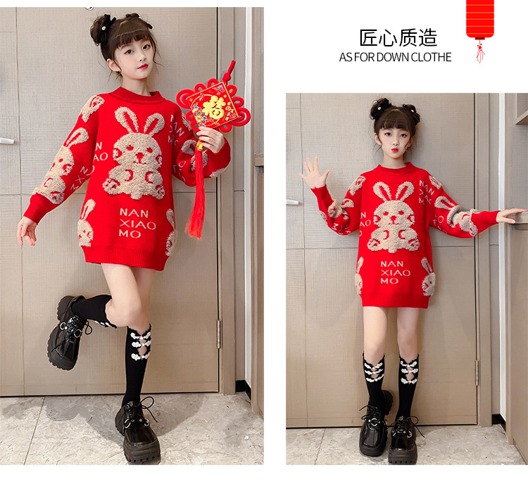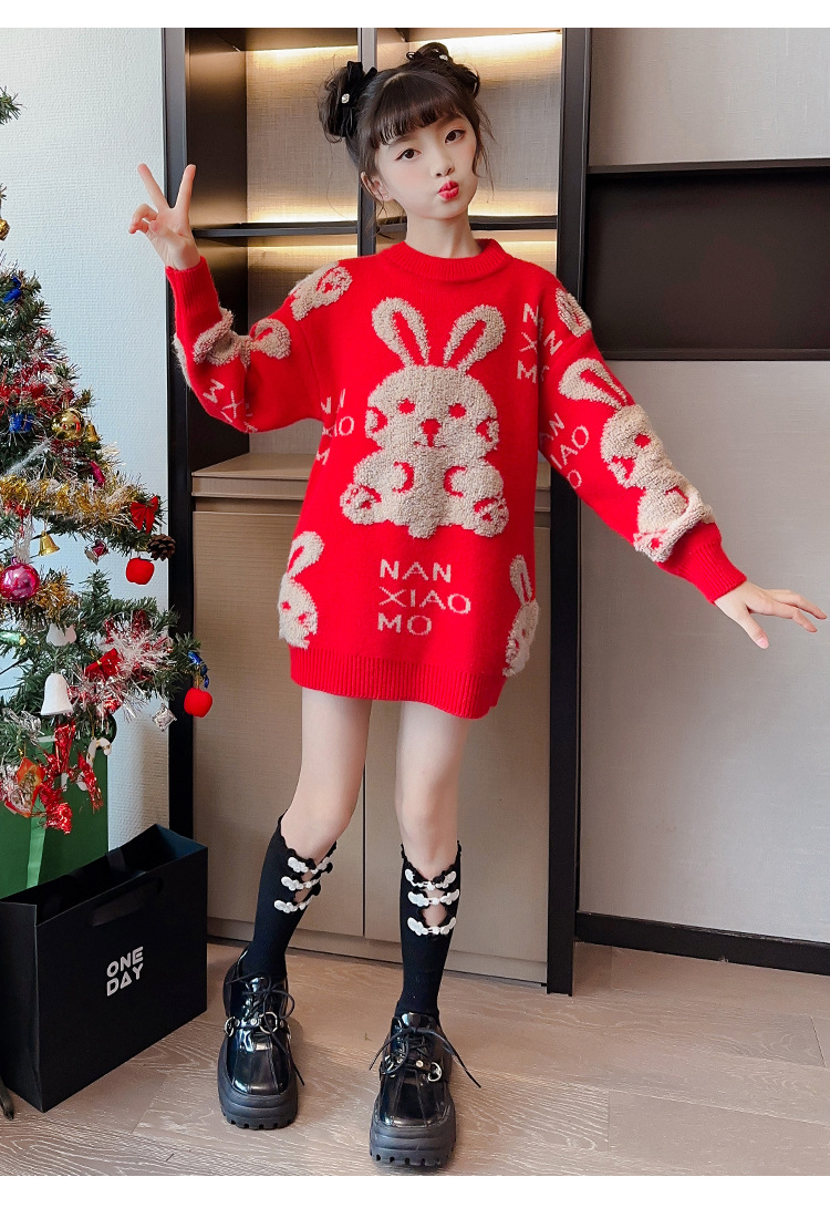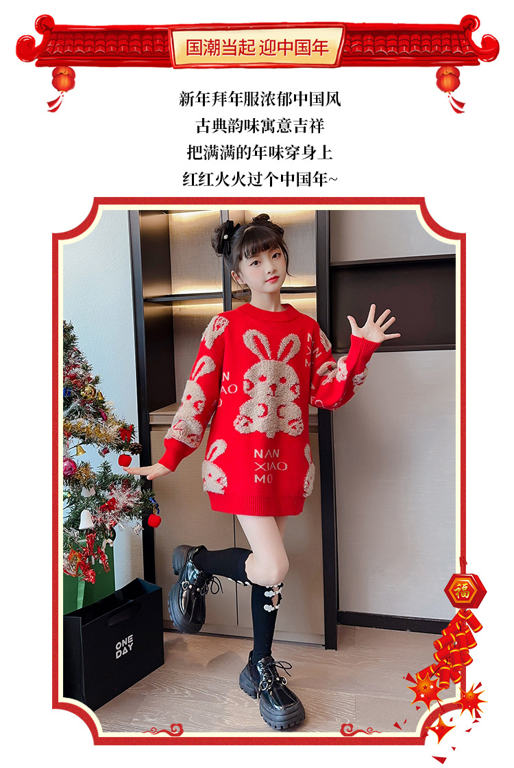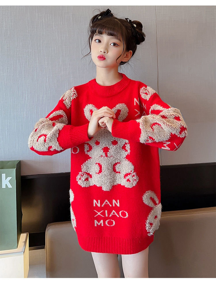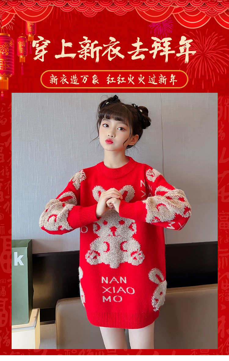 儿童中大童冬装洋气,童装红色年服打底针织衫PJX- NXM2228