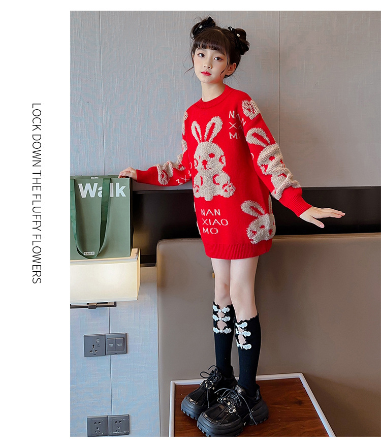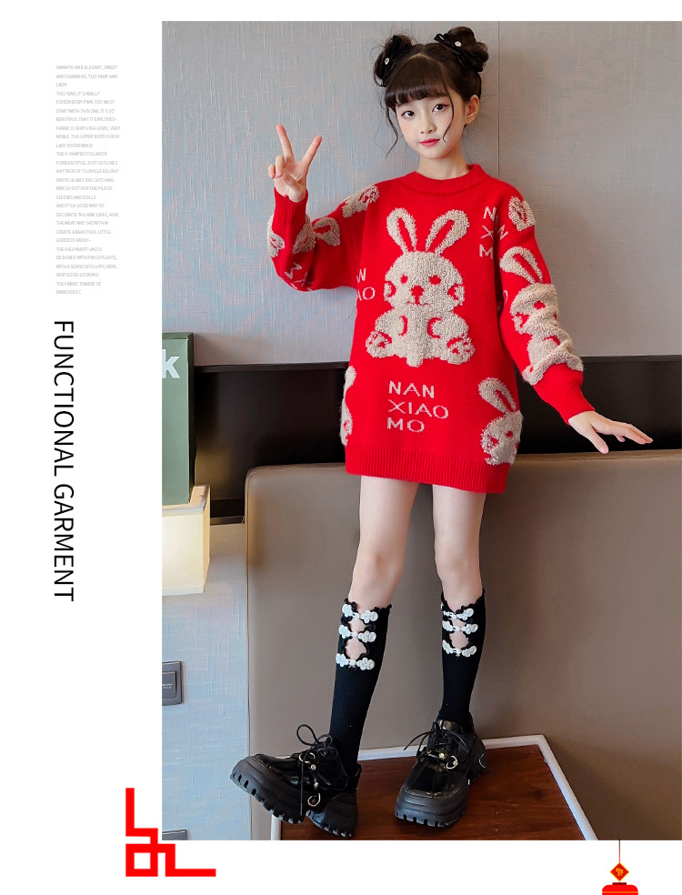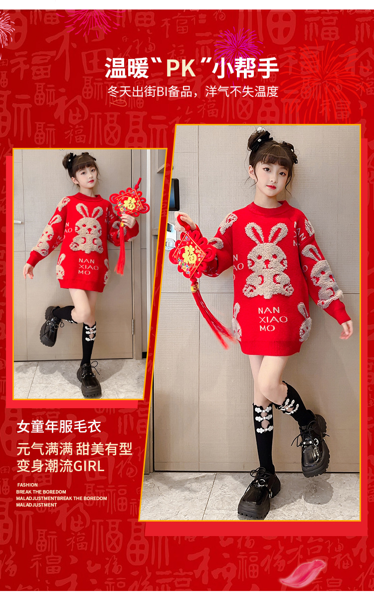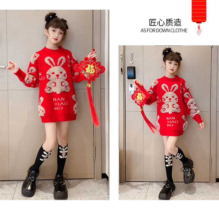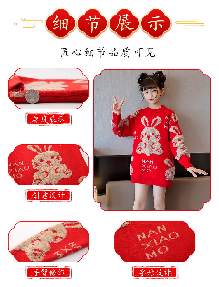 儿童中大童冬装洋气,童装红色年服打底针织衫PJX- NXM2228