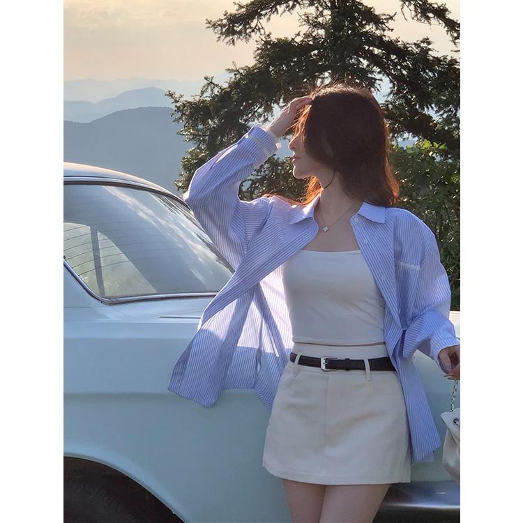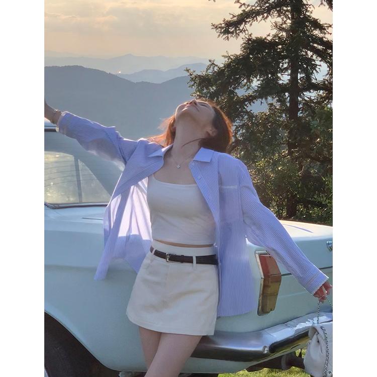 金蘑菇菇 海盐乌托邦 清爽氛围感 条纹衬衫短裤套组