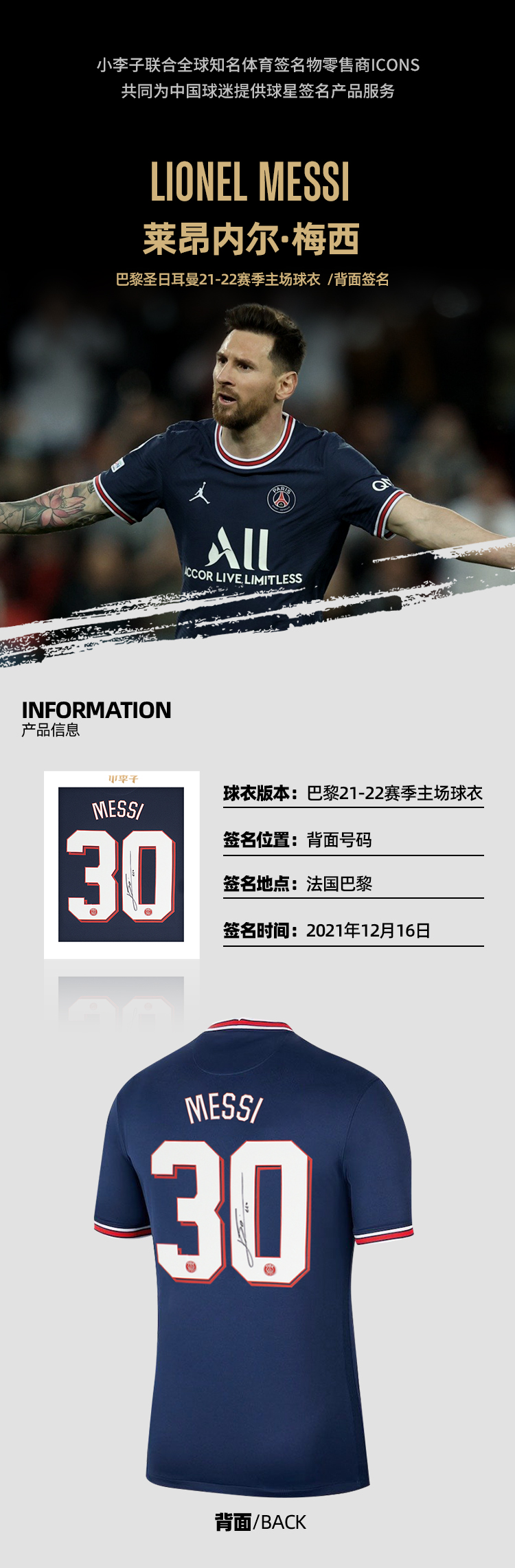 梅西亲签21-22赛季大巴黎球衣30号签名球衣含证书ICLMPSGS2PSG