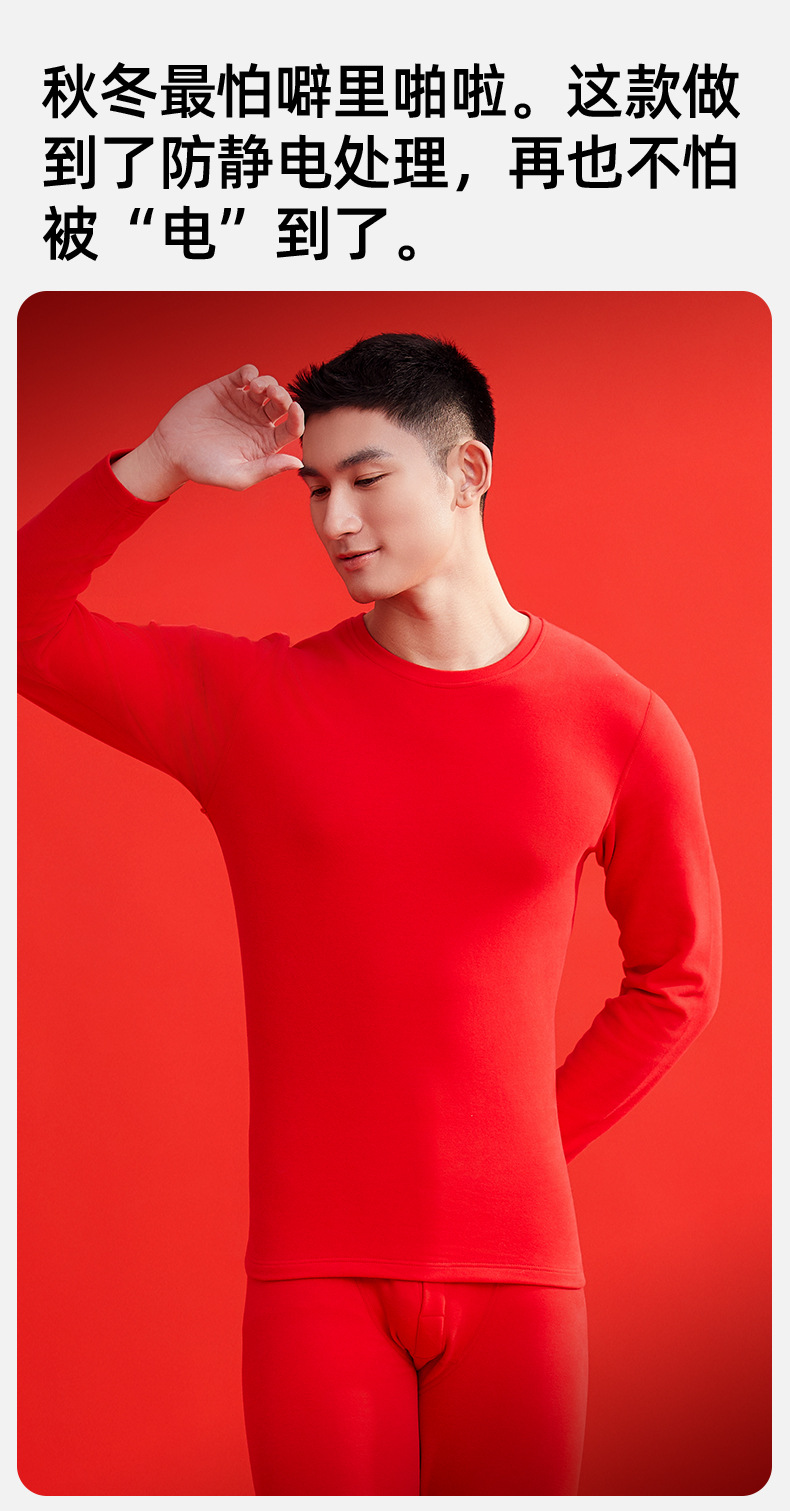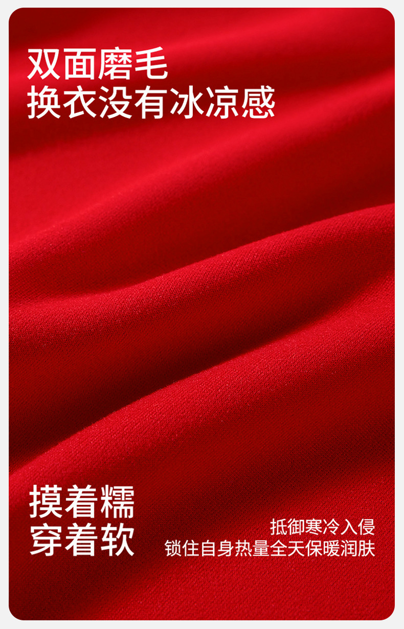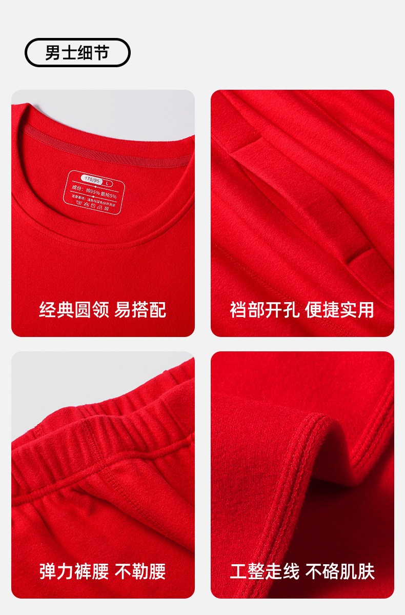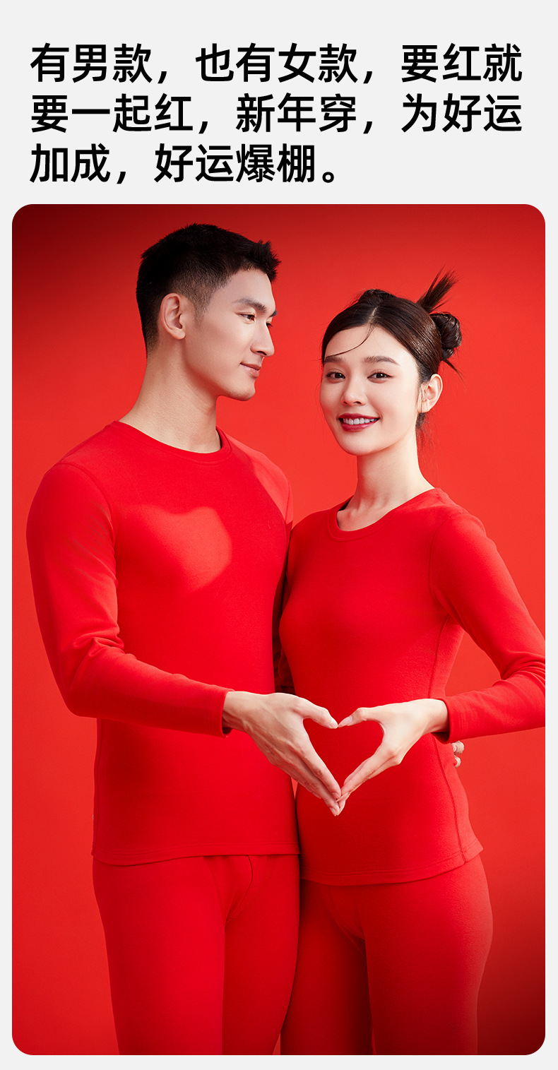 【拍2件减20元】纯棉本命年保暖内衣套装 加绒双面磨绒 男女款结婚大红色秋衣秋裤