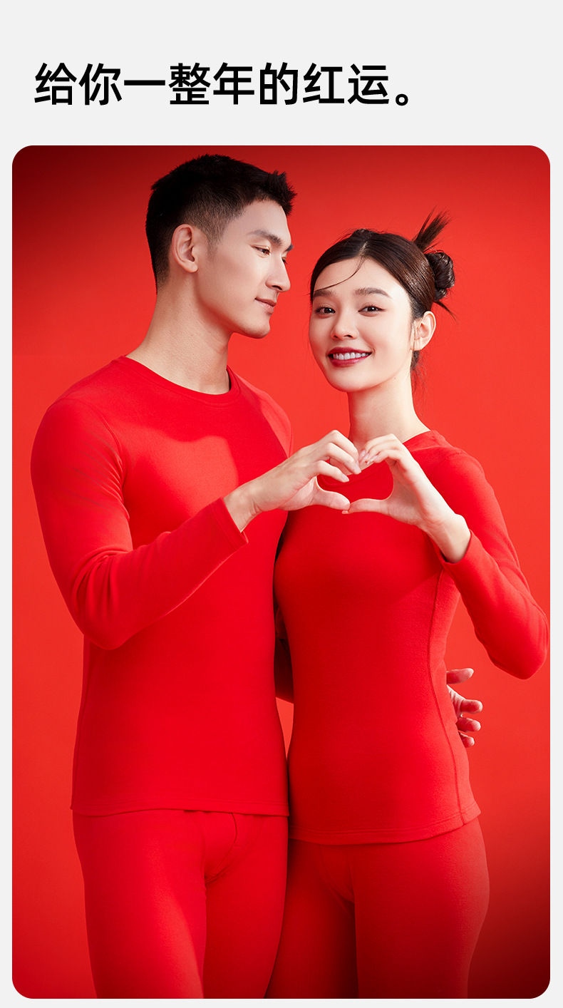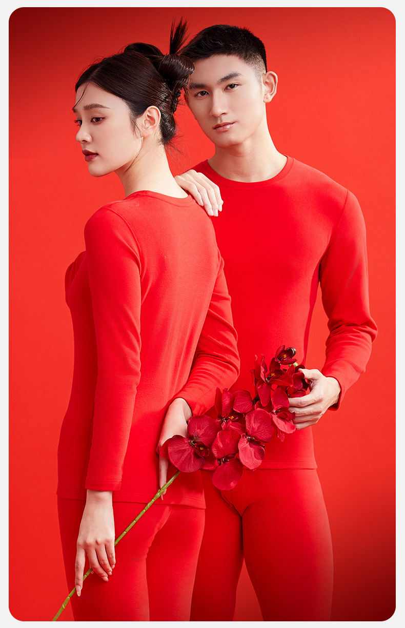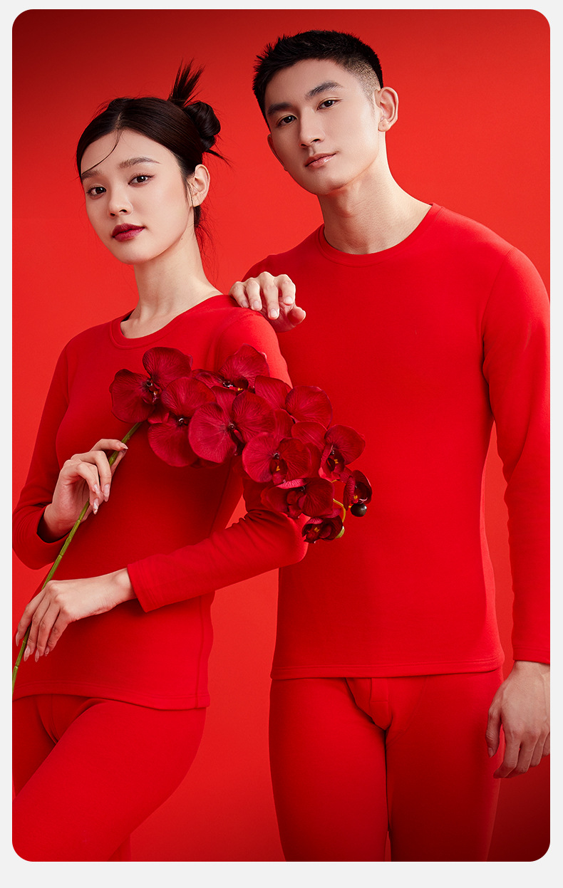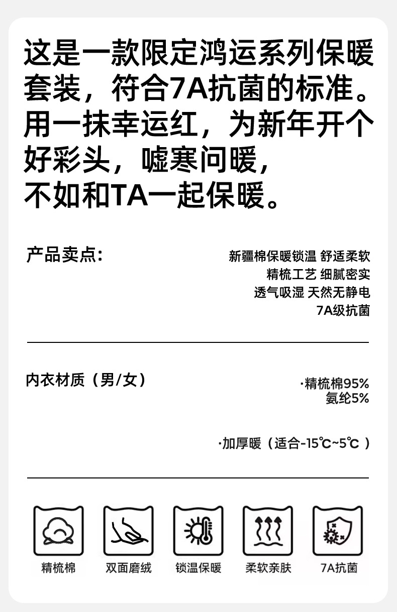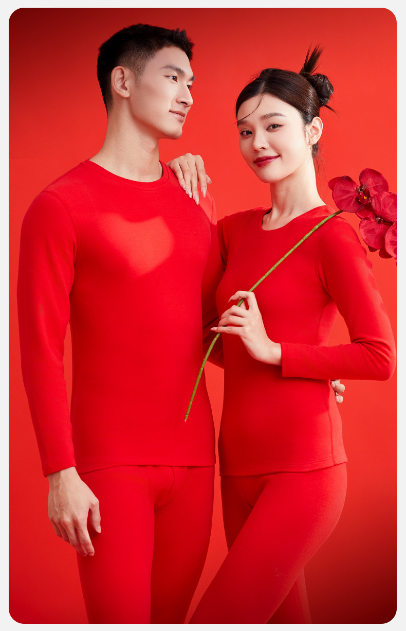 【拍2件减20元】纯棉本命年保暖内衣套装 加绒双面磨绒 男女款结婚大红色秋衣秋裤