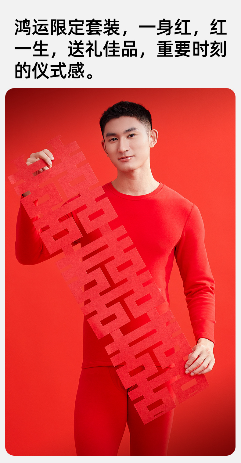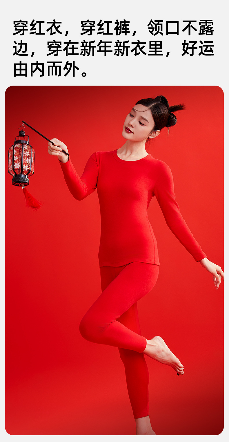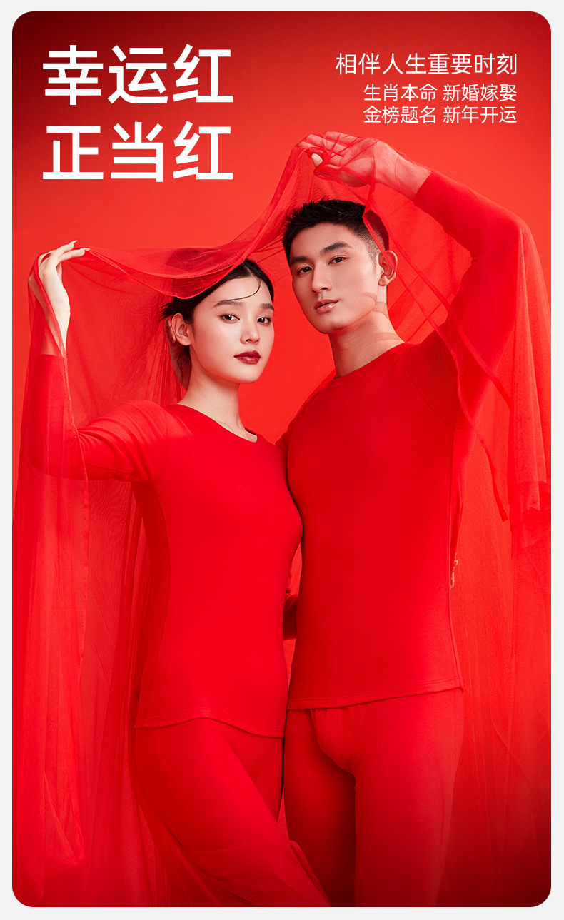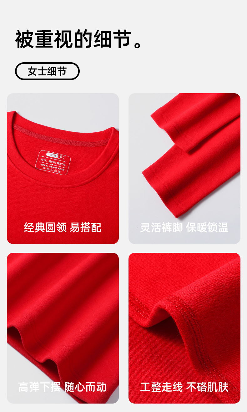 【拍2件减20元】纯棉本命年保暖内衣套装 加绒双面磨绒 男女款结婚大红色秋衣秋裤