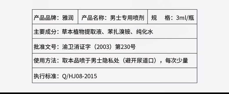 雅润 雅润男用喷剂3ml 延时喷雾 男性男用成人情趣性用品