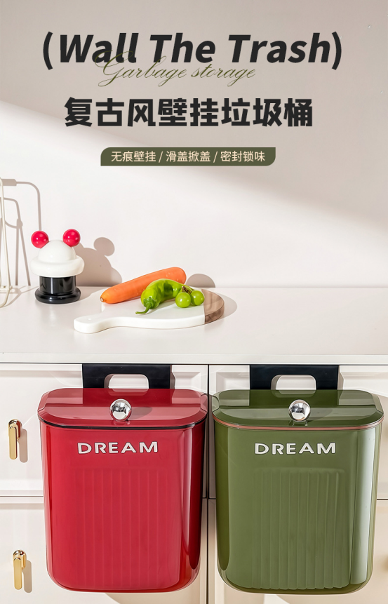 【厨房壁挂式垃圾桶高颜值大容量带盖垃圾筒】 24.7cm宽口设计,残渣不易掉落♻,隐藏垃圾袋更美观 ✅不仅颜值爆表,还有超强承重力 ✅壁挂、台式随意摆放,为室内环境增添精致和奢华感 安装也超级简单,背面自带挂钩,直接挂在墙上就行。使用起来真的是既方便又美观