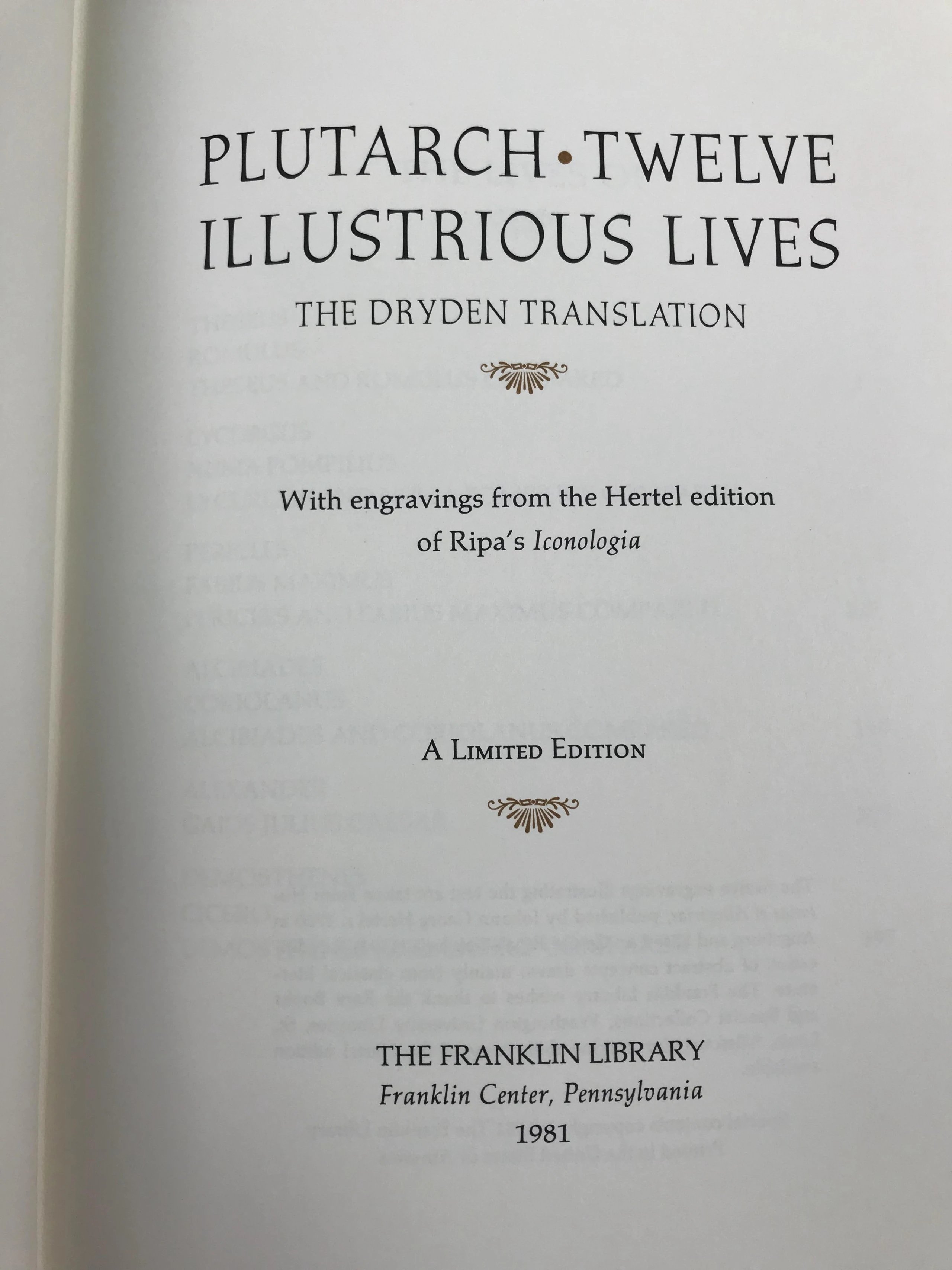 限量版!含藏书票 普鲁塔克《希腊罗马名人传》 配插图 富兰克林图书馆豪华皮装本