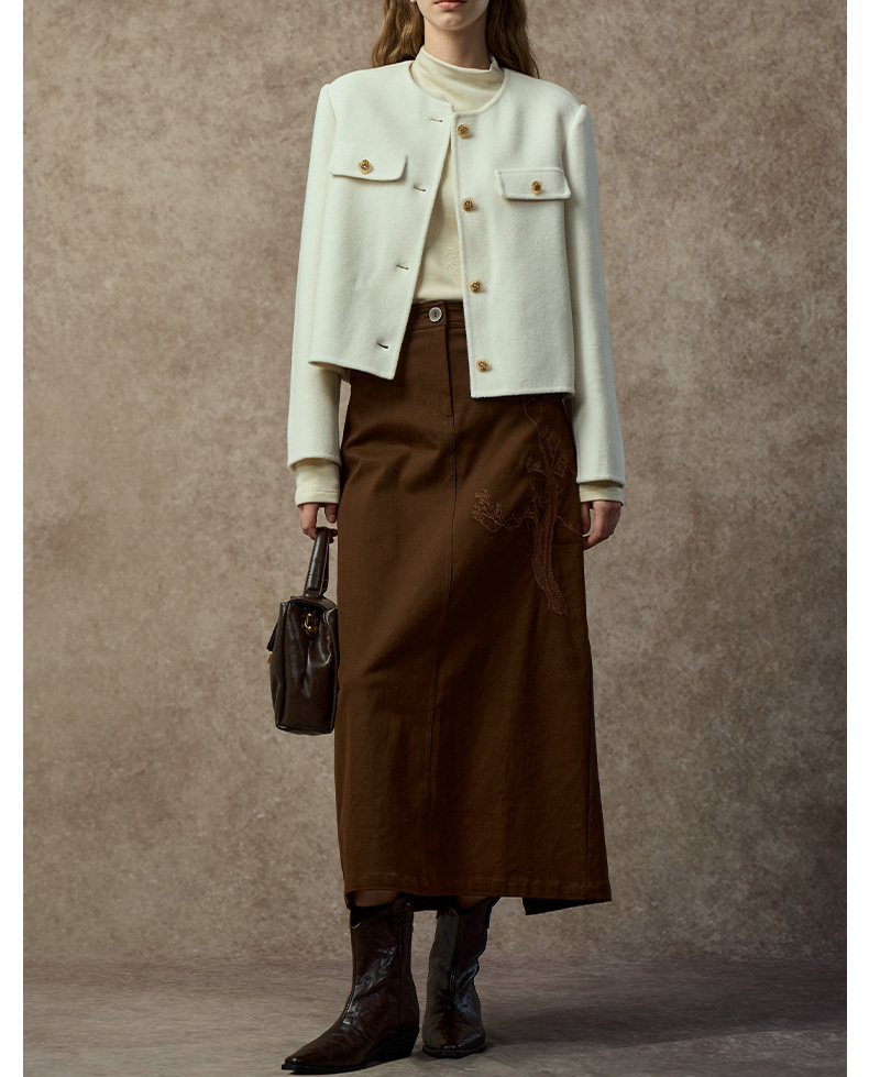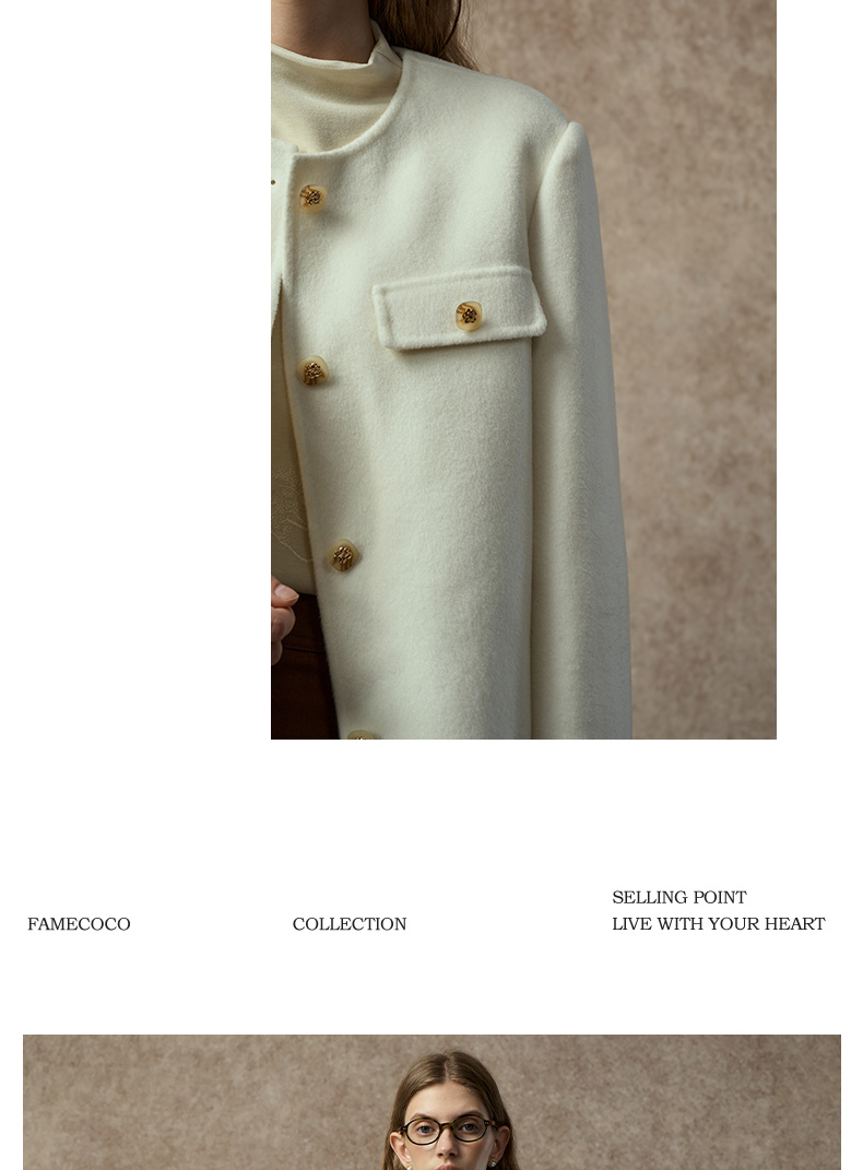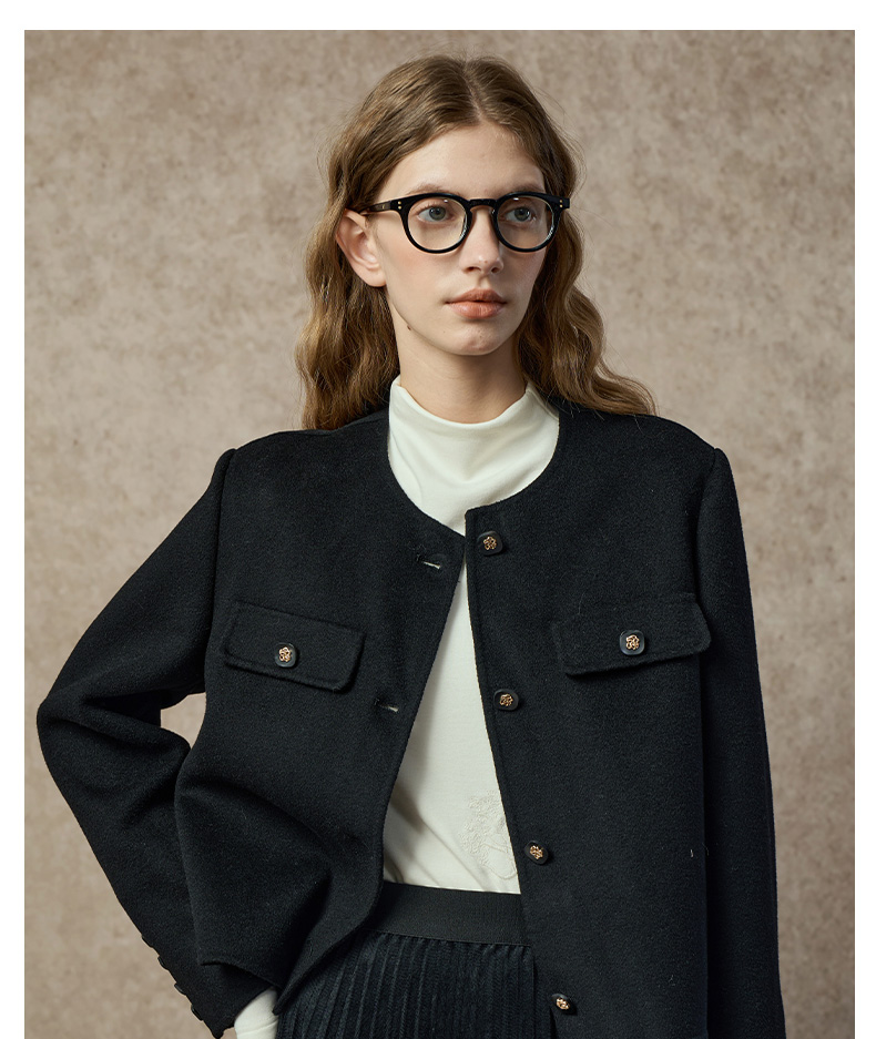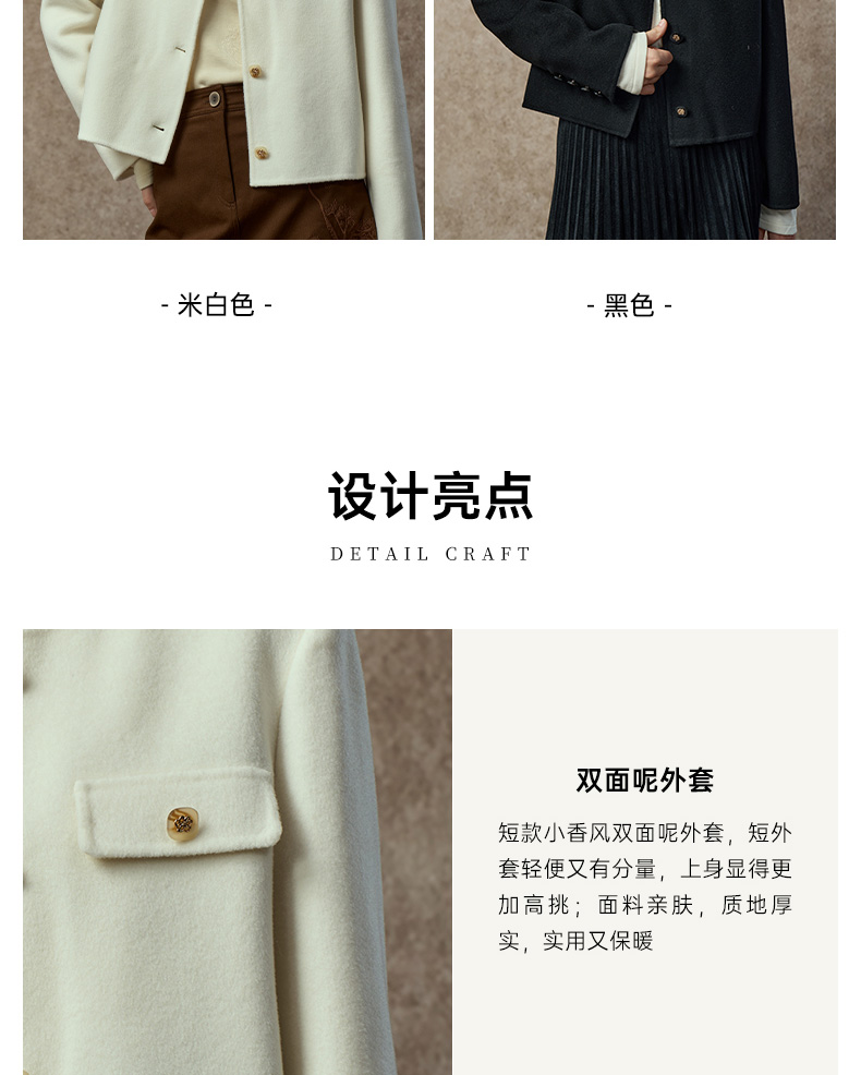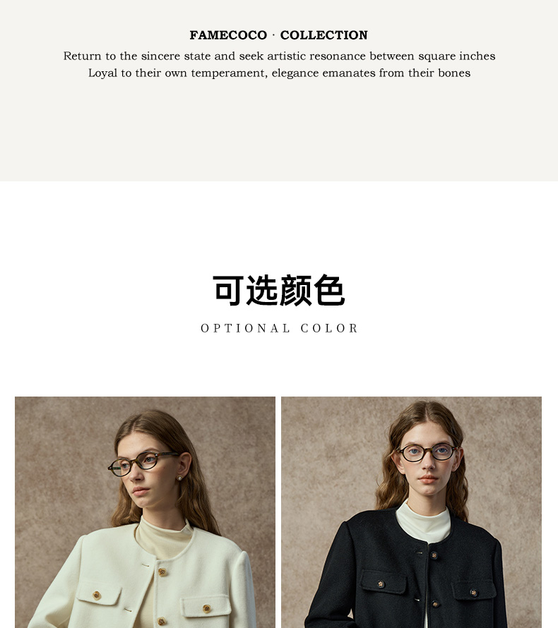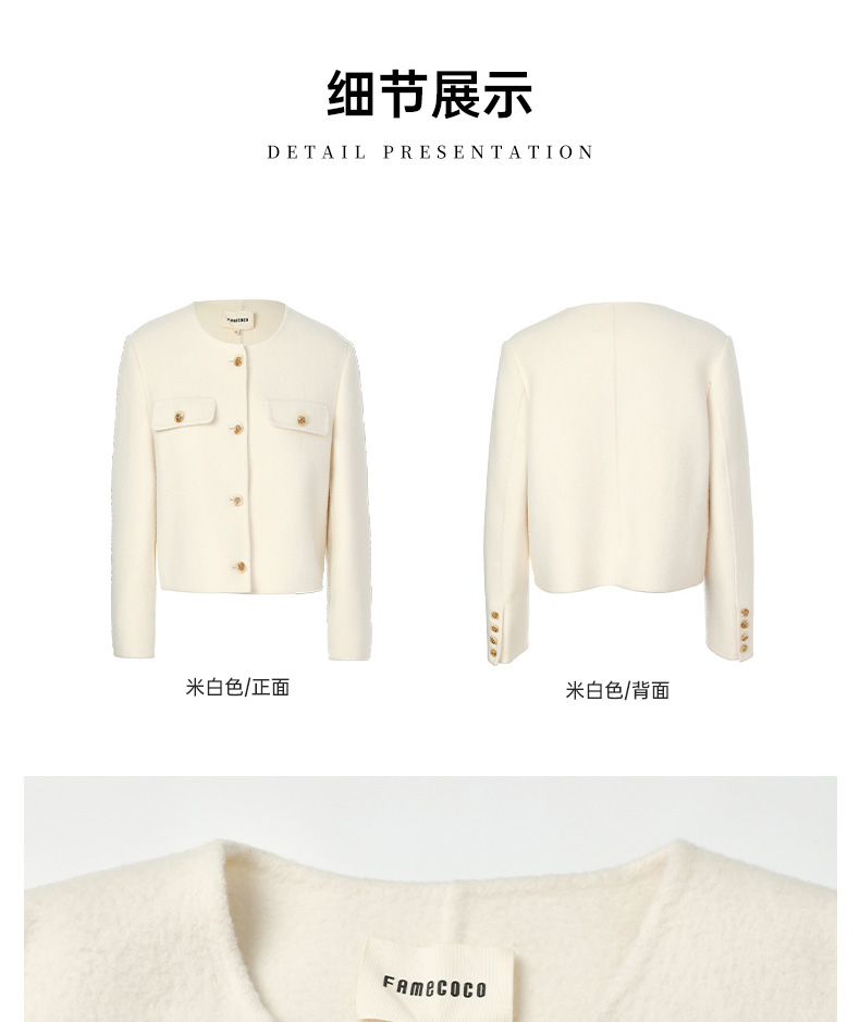 Famecoco范可儿高级感小香风短款双面呢外套FAC8AS008