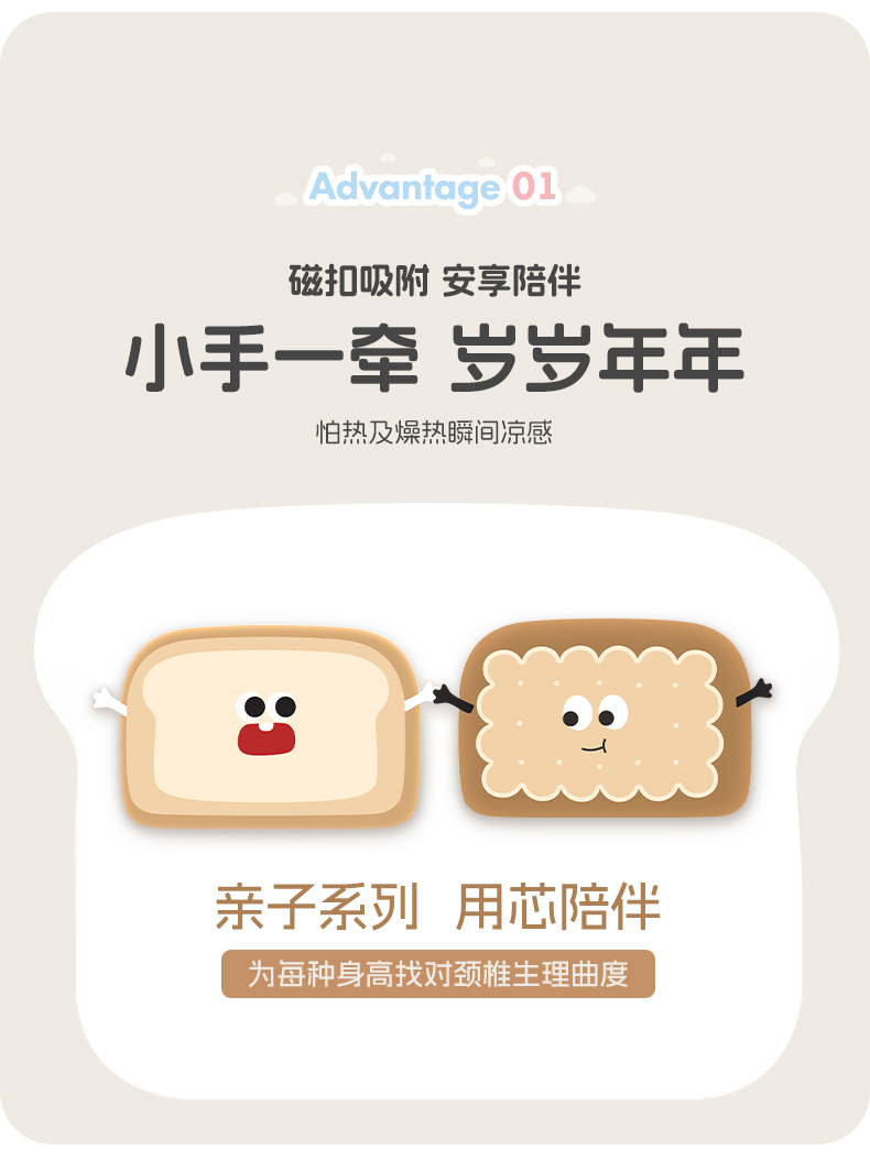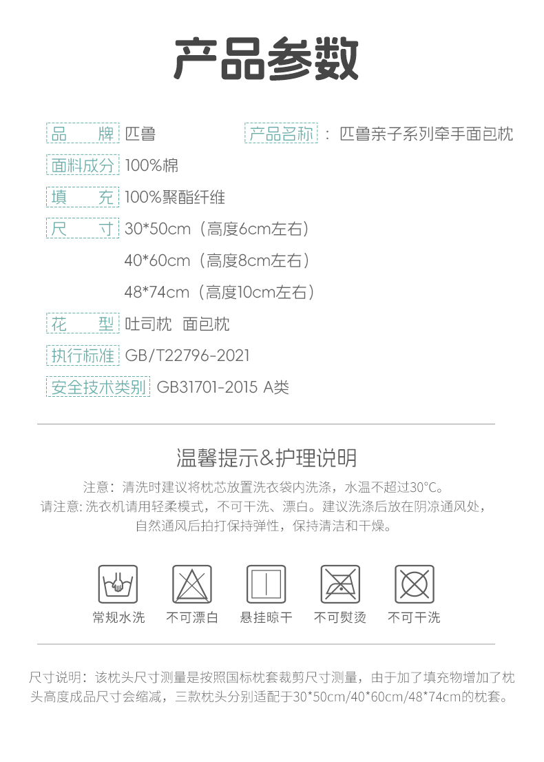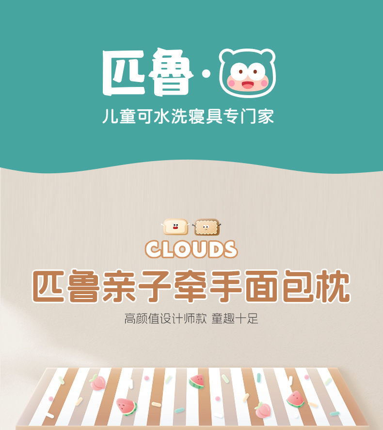 匹鲁“牵手”面包枕三段分区设计透气舒适亲子款