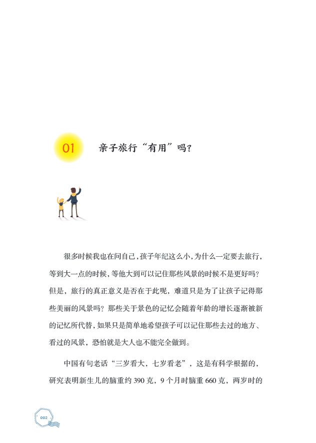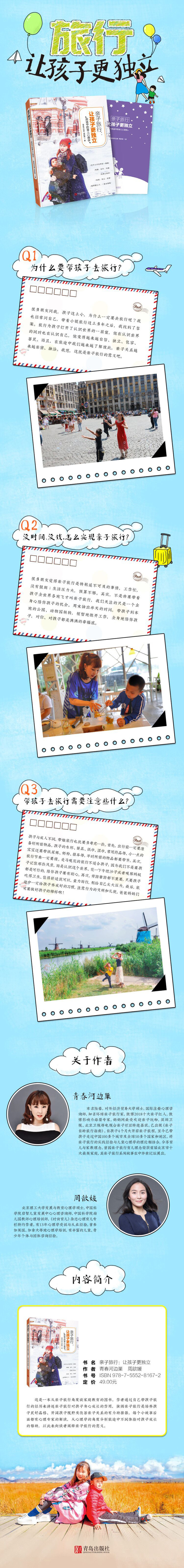 这是一本非常具有借鉴意义的亲子旅行图书,作者从五十多个国家的亲子旅行经验中选取了许多典型场景与读者分享,并从心理学的角度给予了更具启发性的参考意见,同时也有丰富详实的攻略类“干货”。相信年轻父母们能够在这本书的帮助下,带孩子更好地探索大千世界的美好,完成更加有意义的亲子旅行。