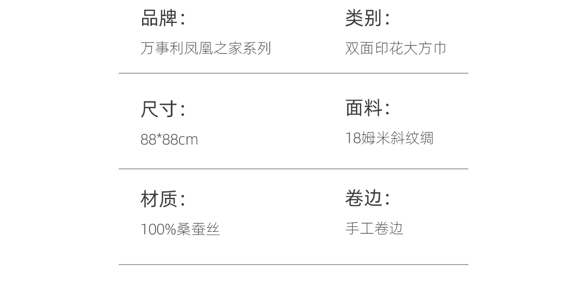 凤凰之家“玫瑰绘梦”88厘米双面印花大方巾