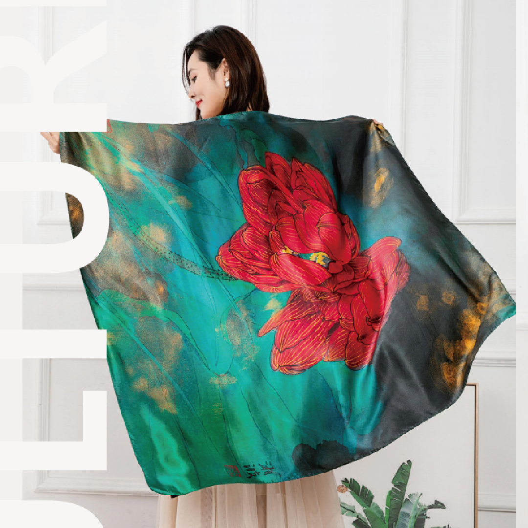 披肩丝巾 | 陈湘波老师花鸟画作品元素授权 纯手工艺术衍生品 品位生活【陈湘波艺术公益基金会 X ArtJi】现货包邮 | 一艺之间 艺术家精选文创推荐