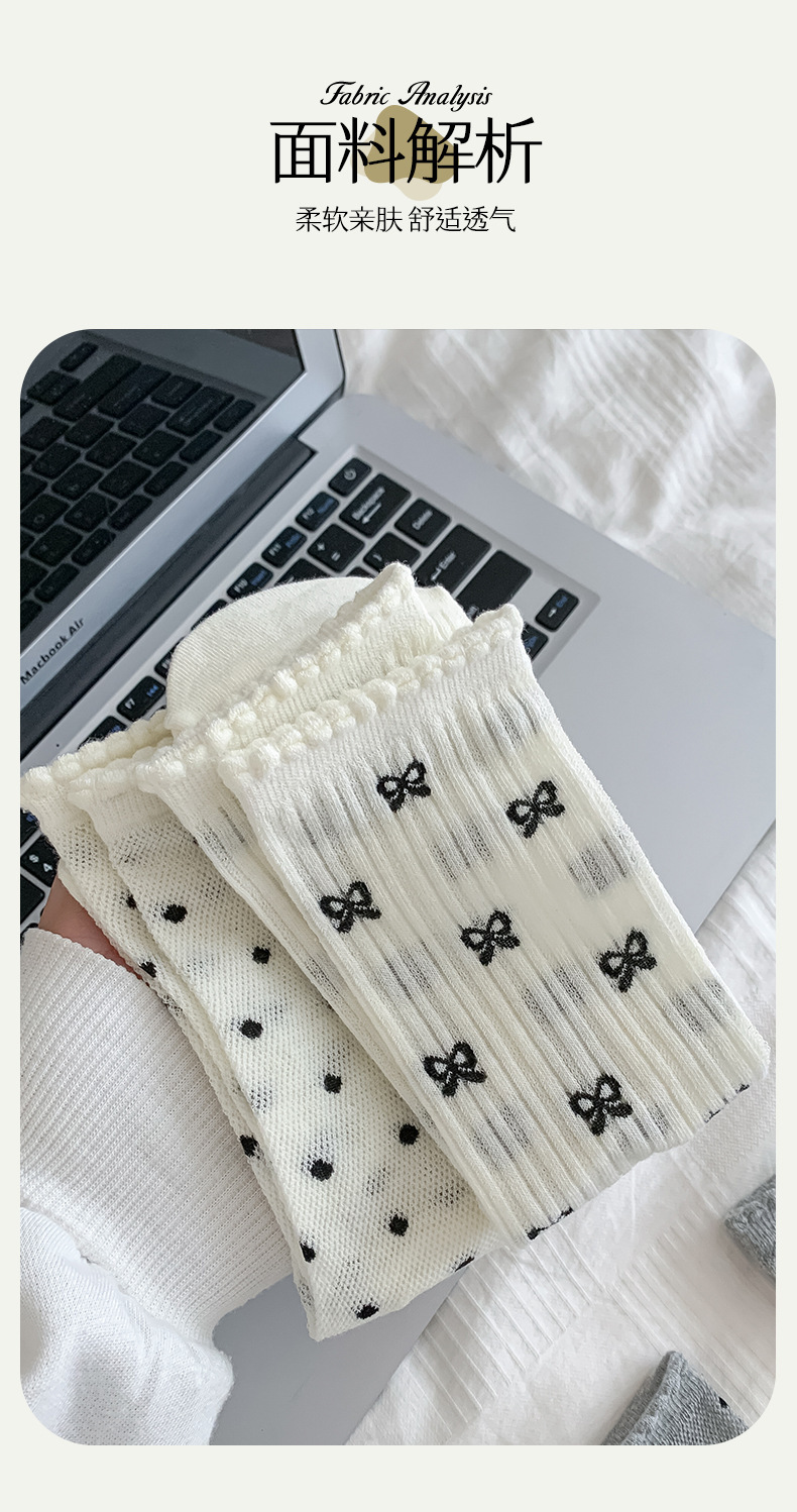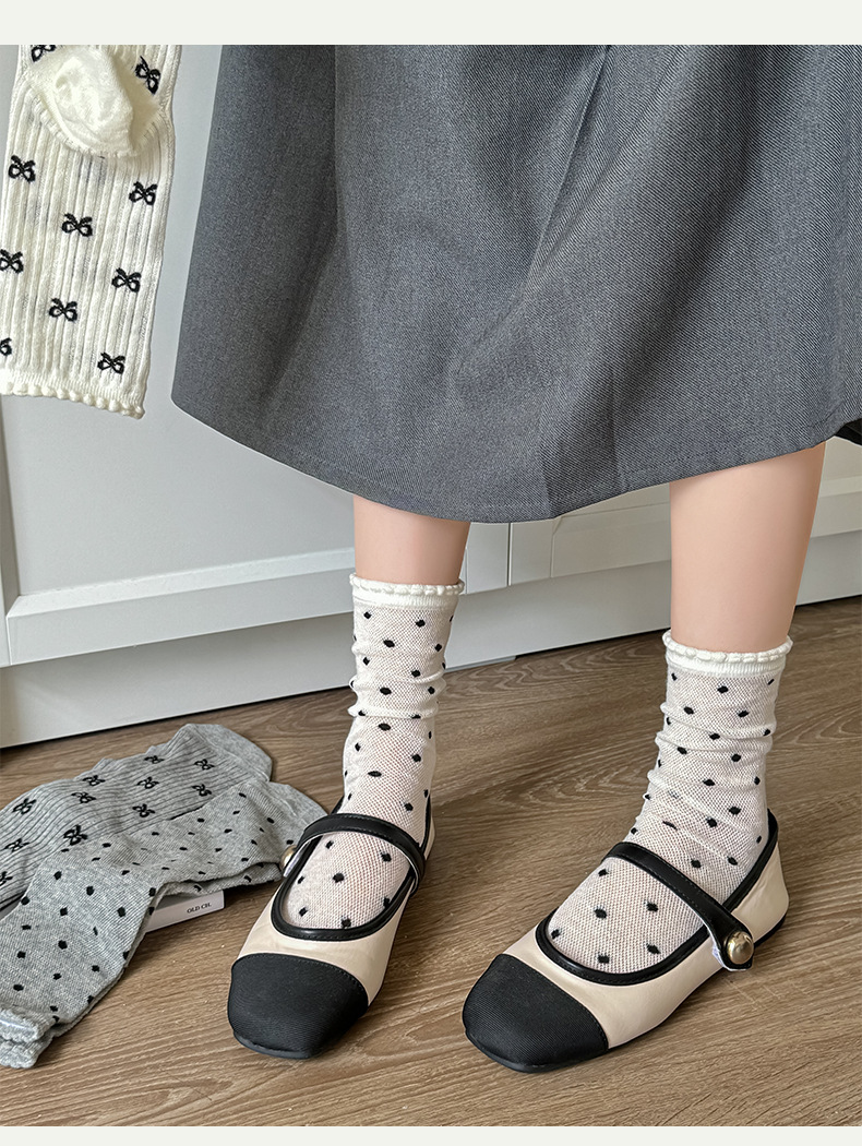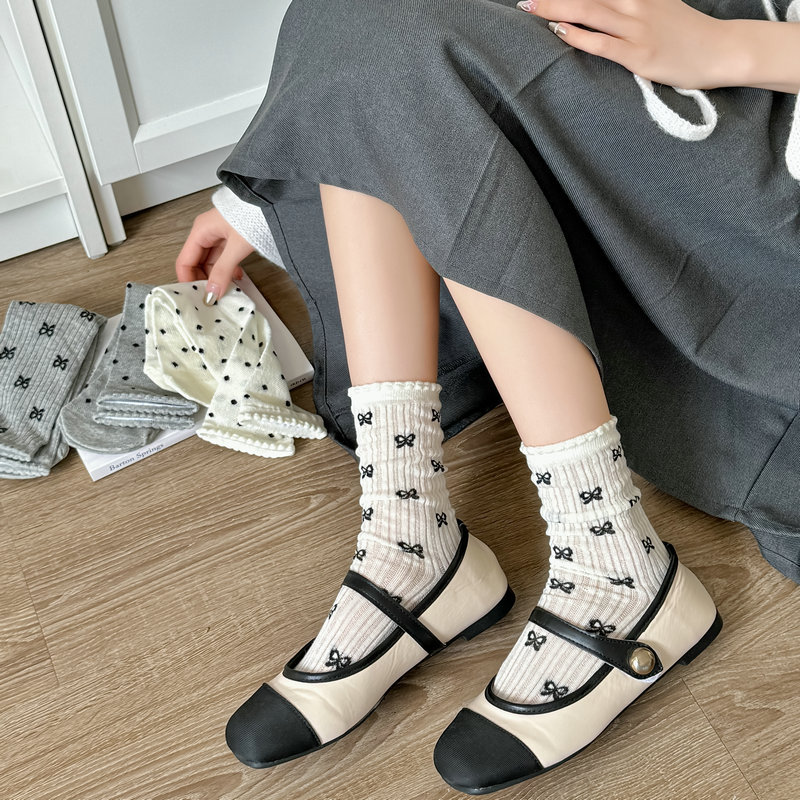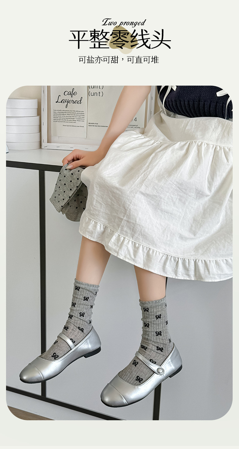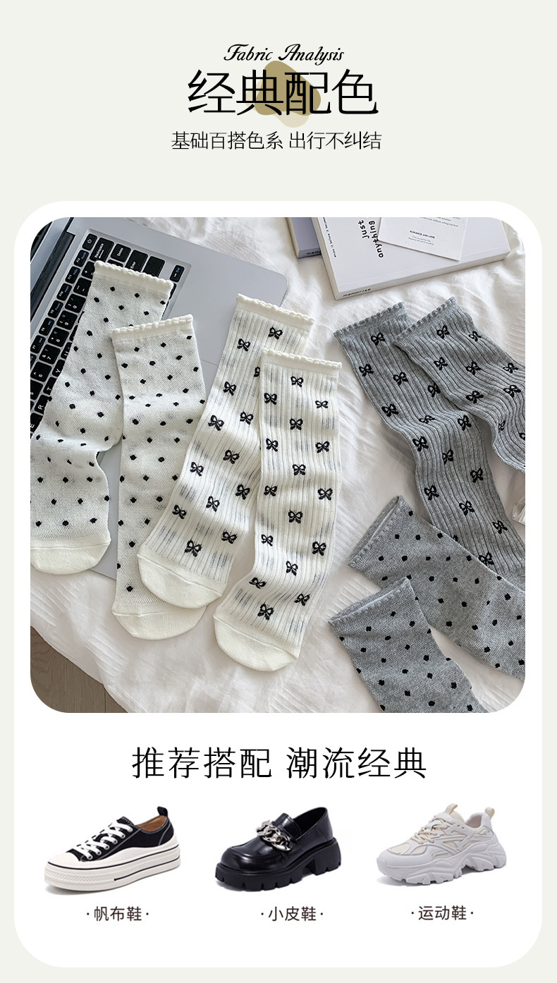 【独立包装】酷艾妮花边薄款中筒袜 可爱波点袜子 全棉透气 复古芭蕾风 温柔系蝴蝶结百搭