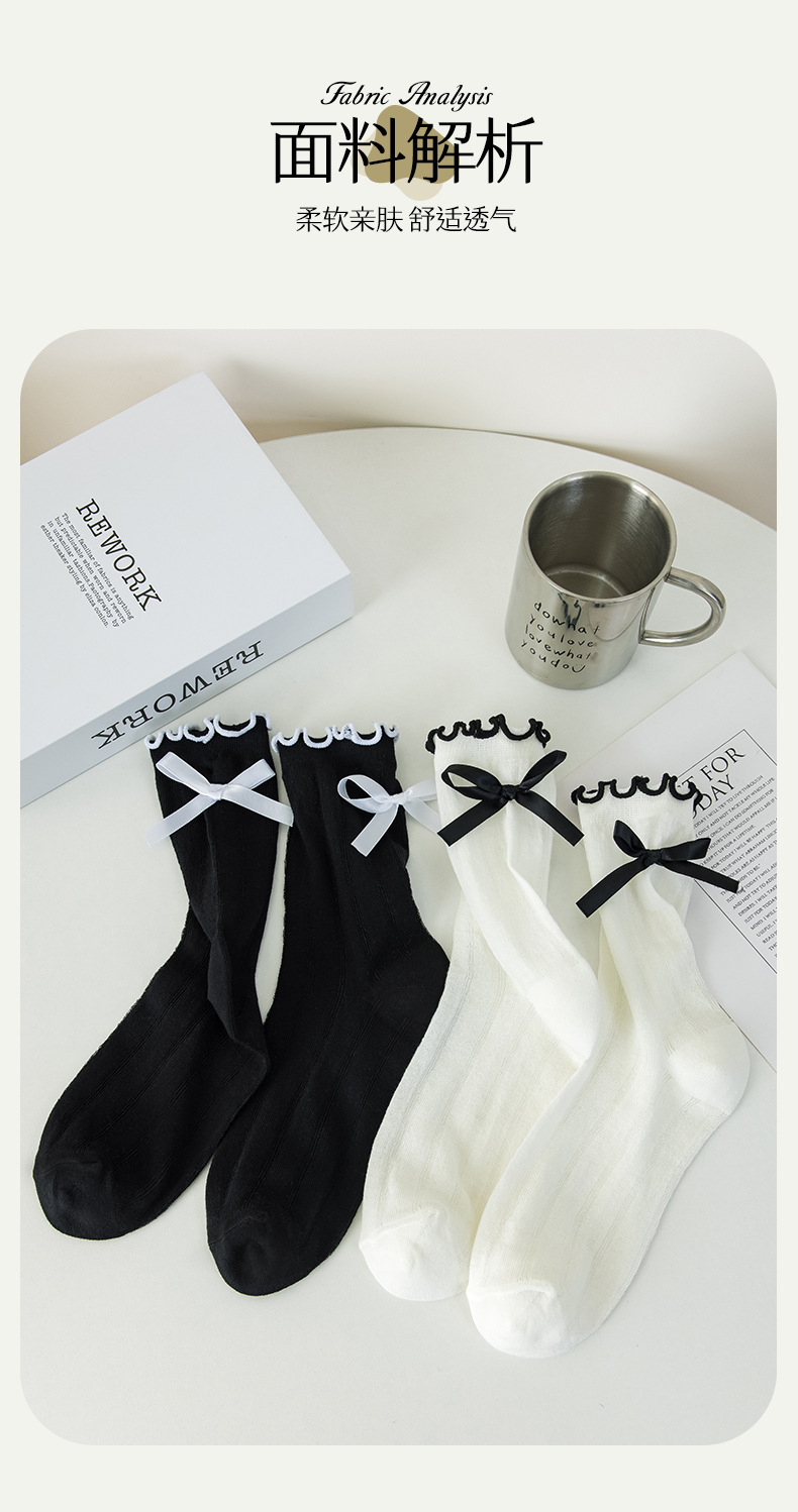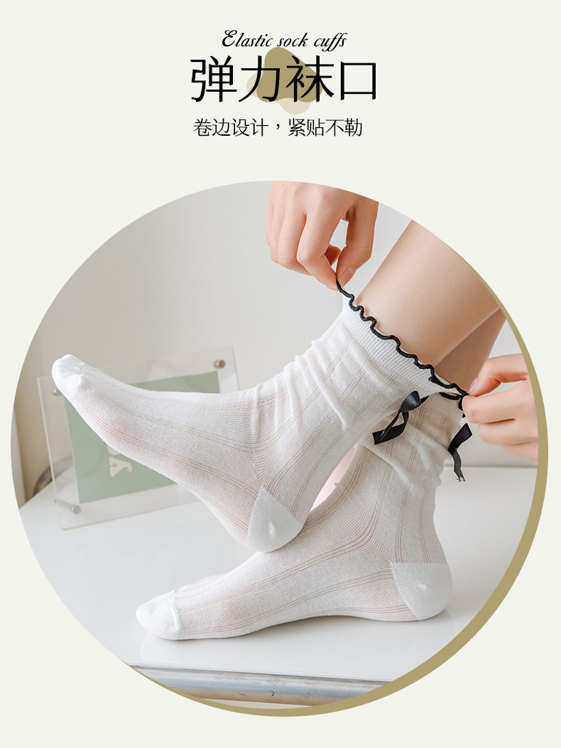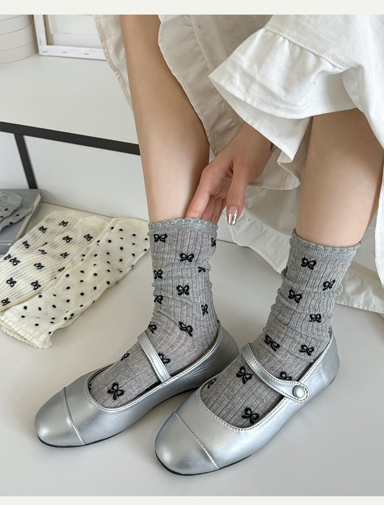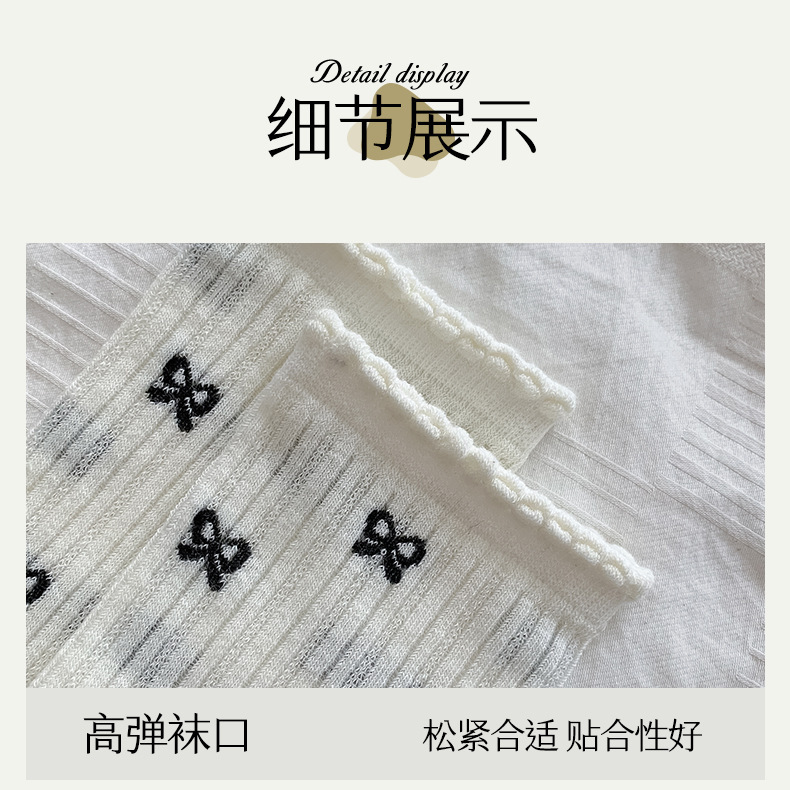 【独立包装】酷艾妮花边薄款中筒袜 可爱波点袜子 全棉透气 复古芭蕾风 温柔系蝴蝶结百搭