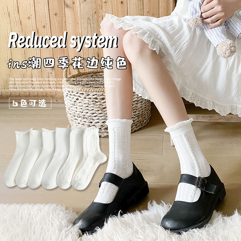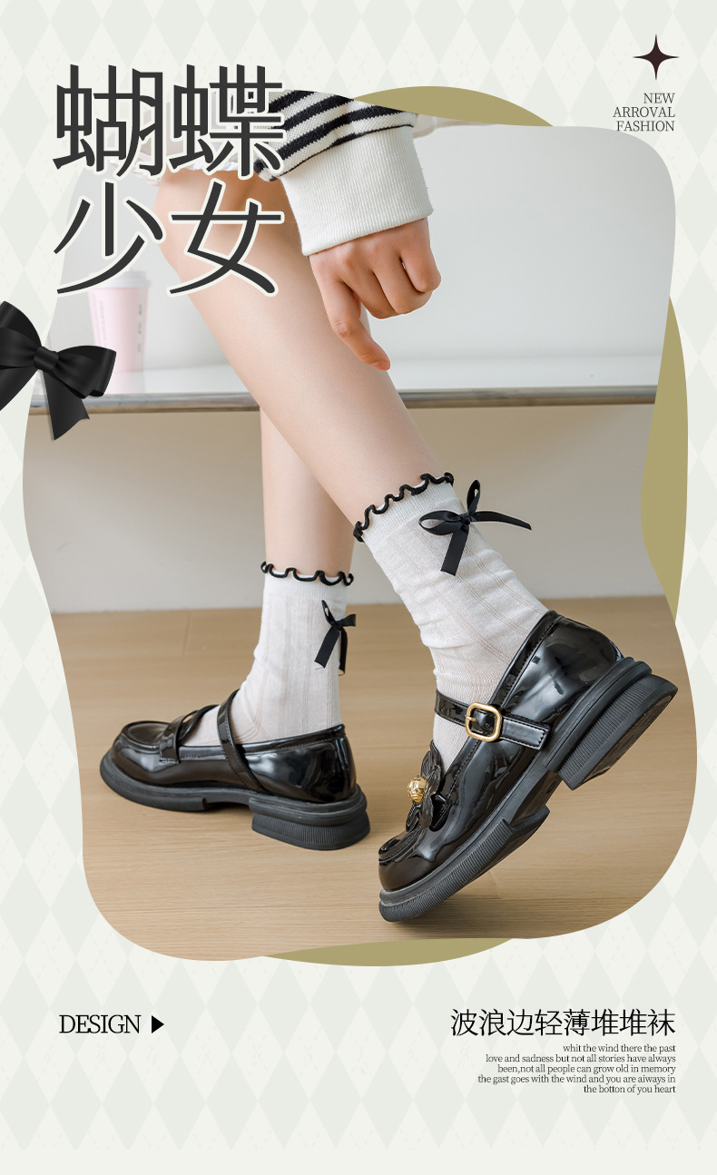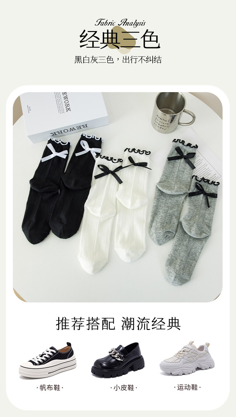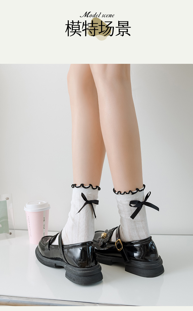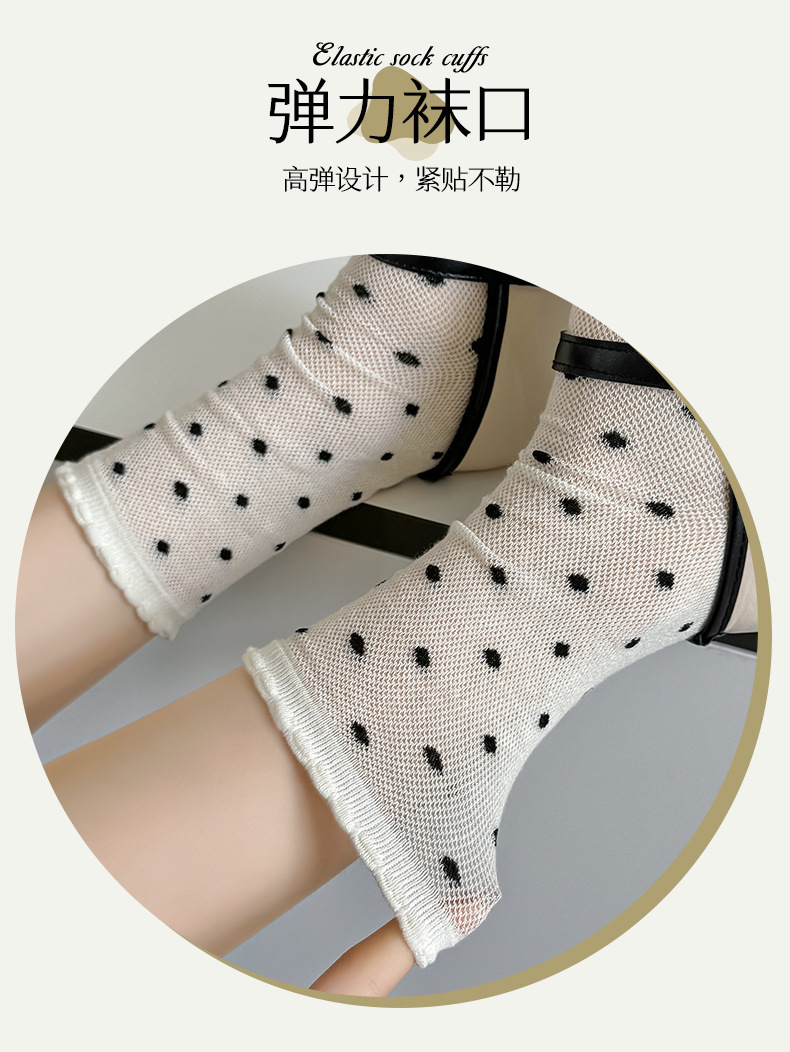 【独立包装】酷艾妮花边薄款中筒袜 可爱波点袜子 全棉透气 复古芭蕾风 温柔系蝴蝶结百搭