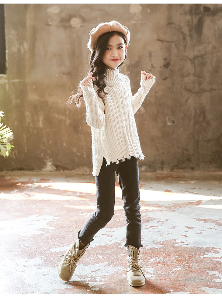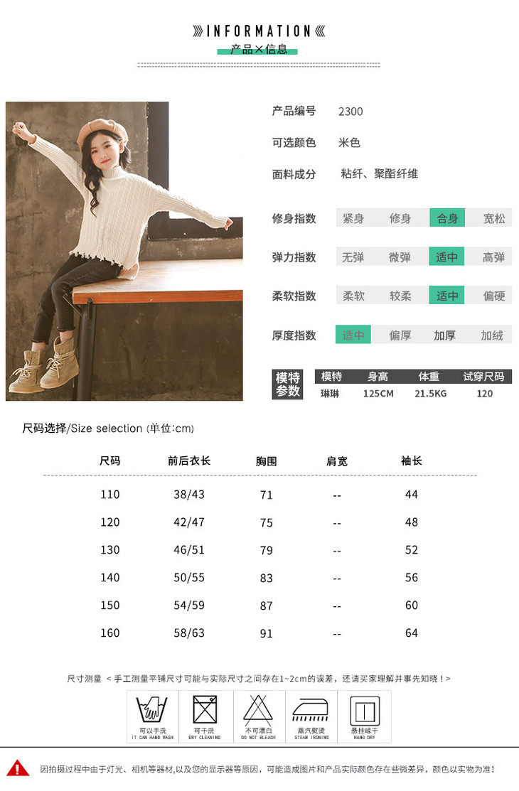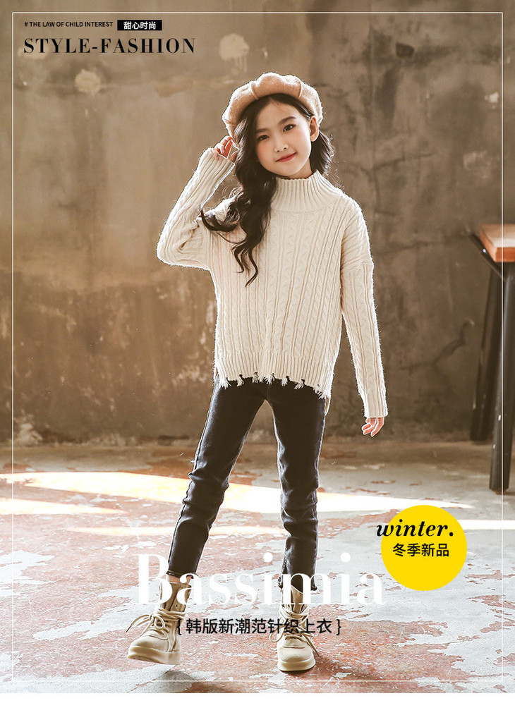 Bassimia女童韩版儿童半高领毛衣套头针织衫2300