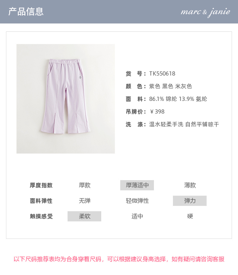 【速干】马克珍妮女童轻弹运动微喇裤儿童裤子2025春夏新款550618
